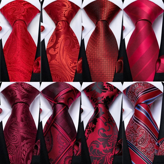 Designer Wedding Men's Tie Red Solid Striped Paisley Neckties For Men Business Hanky Cufflinks Tie Set