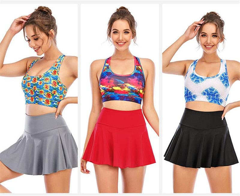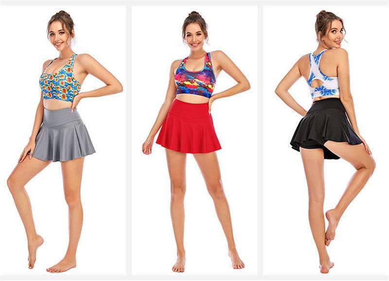 2 in 1 Sports Gym Golf Dancing Running Fitness Yoga Skorts Shorts and Mini Pleated Tennis Skirt