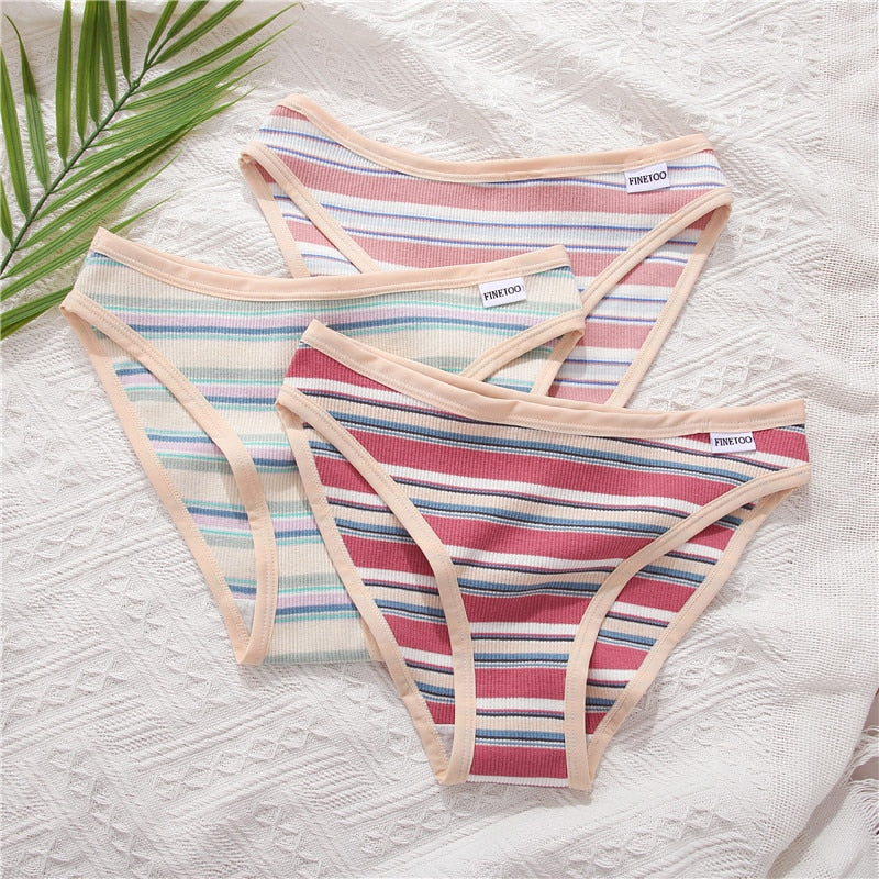 2 Pack Cotton Mix Panties Femme Colorful Striped Lingerie Briefs Underpant Ladies Underwear