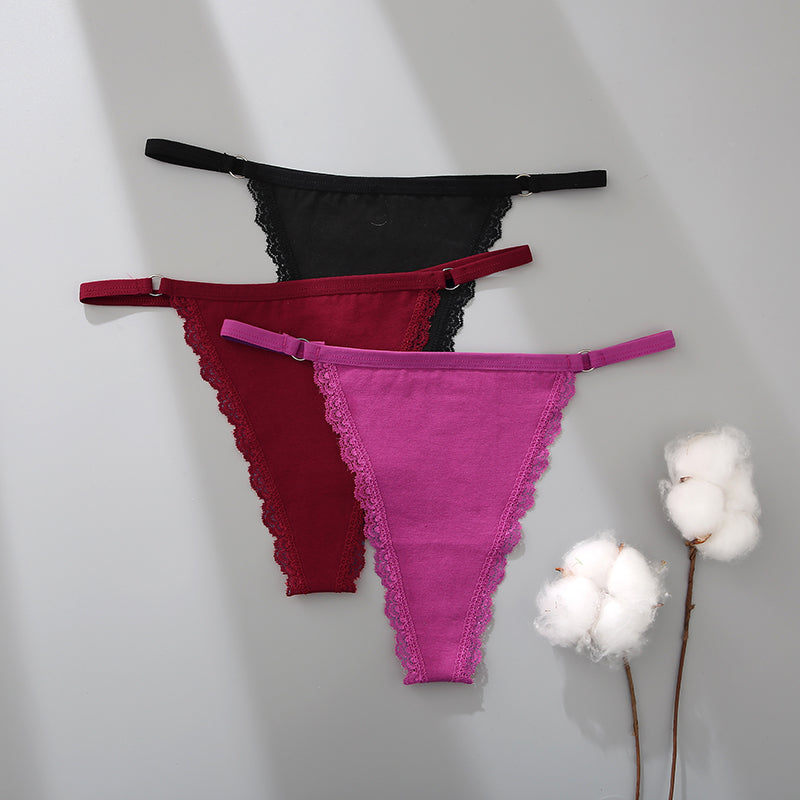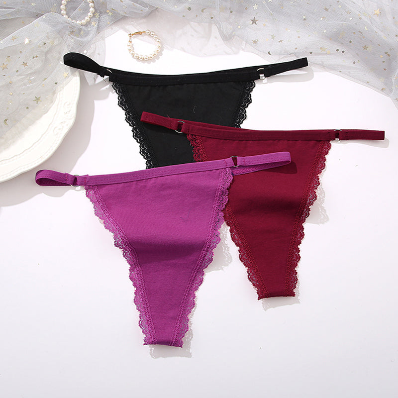 2 Pack Set G-String Cotton Mix Panties Low Waist thong Solid Underpants Comfortable Underwear Intimate Lingerie