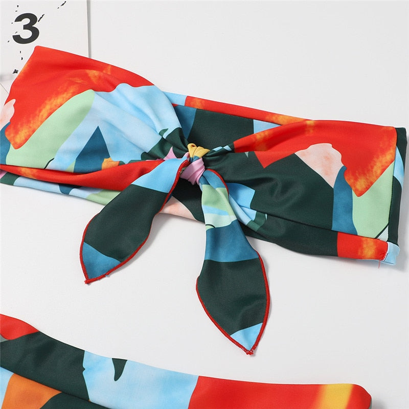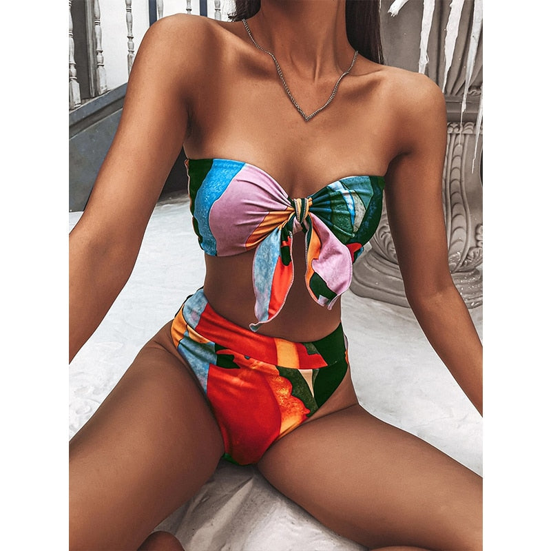 2 Piece Brazilian high waist bikini Bandeau knot swimsuit print swimwear bathing suit Beachwear