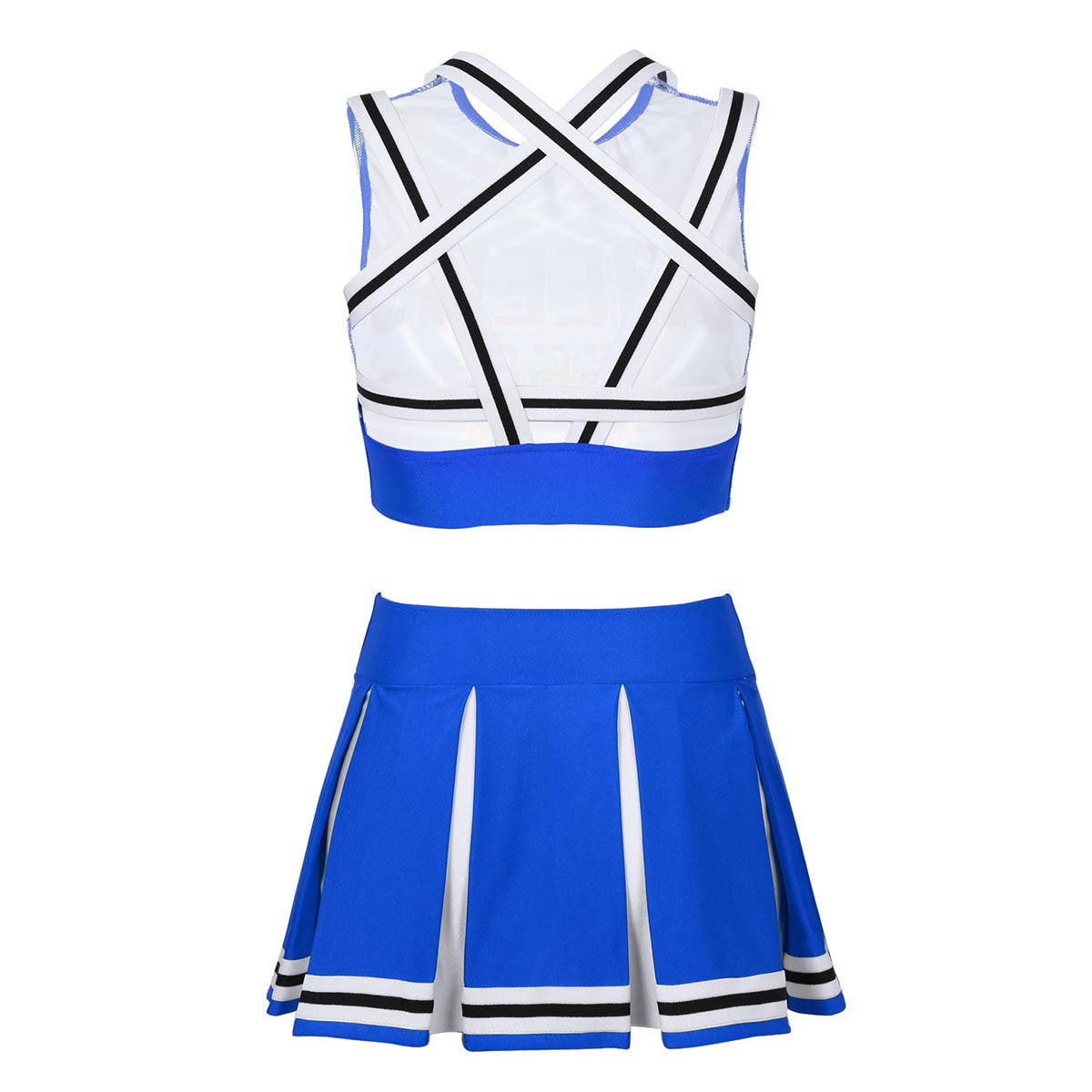 2 Piece Cosplay Uniform Sleeveless Crop Top with Mini Pleated Skirt Cheerleader Costume Set