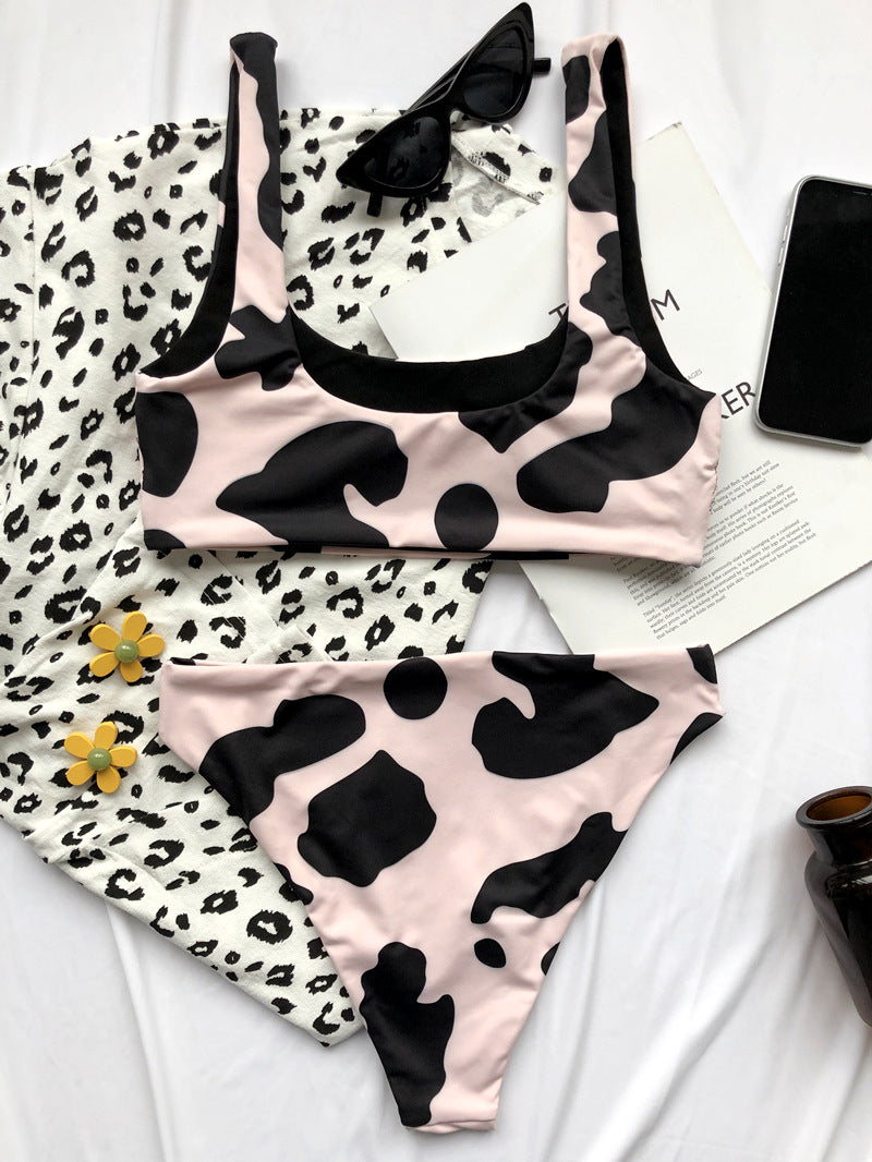 2 Piece Cow Print Bikini Cut Out Push Up Swimsuit Brazilian Summer Bathing Suit High Waist Swimwear