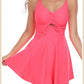 Model Number: 2-Pc Drawstring Front Tankini Women Solid Hollow Out Swimwear Skirt