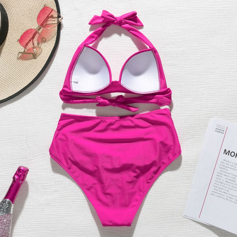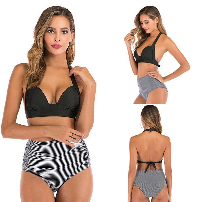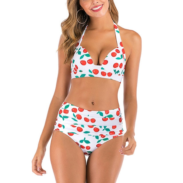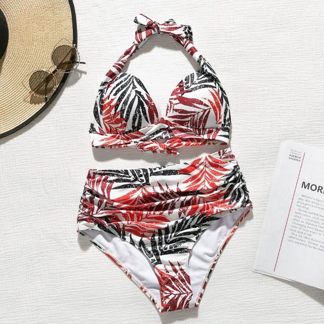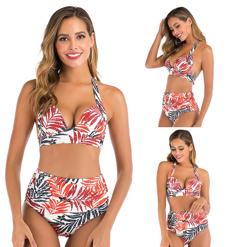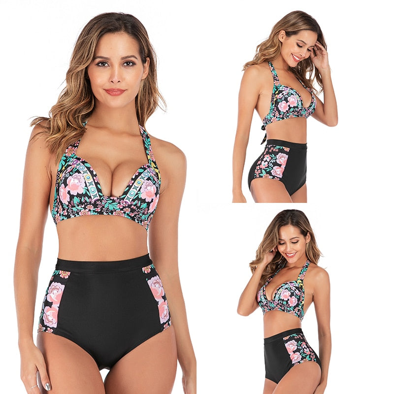 2 Piece High waist bikini set Halter bathing suit swimsuit Plus size bikini Floral print swimwear