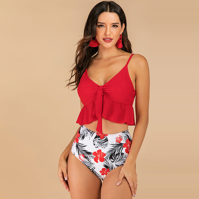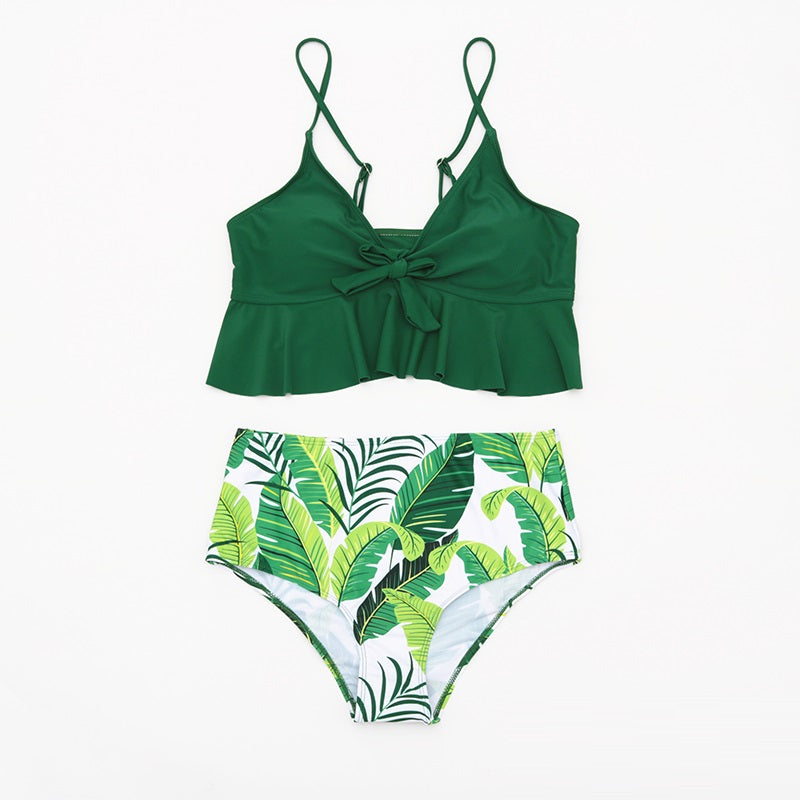 2 Piece High Waist Swimwear Ruffle Swimsuit Vintage Retro Bikini Set Plus Size Bathing Suits Summer Beachwear