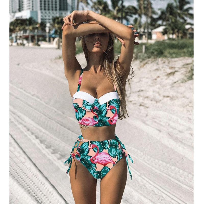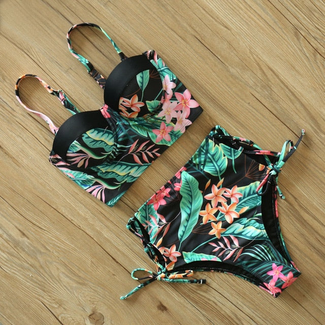 Pay in 4 instalments with AfterPay, Buy Now Pay Later2 Piece Leaf Print Bikinis Women Swimsuit Vintage Retro Bathing Suit Halter High Waist Swimwear