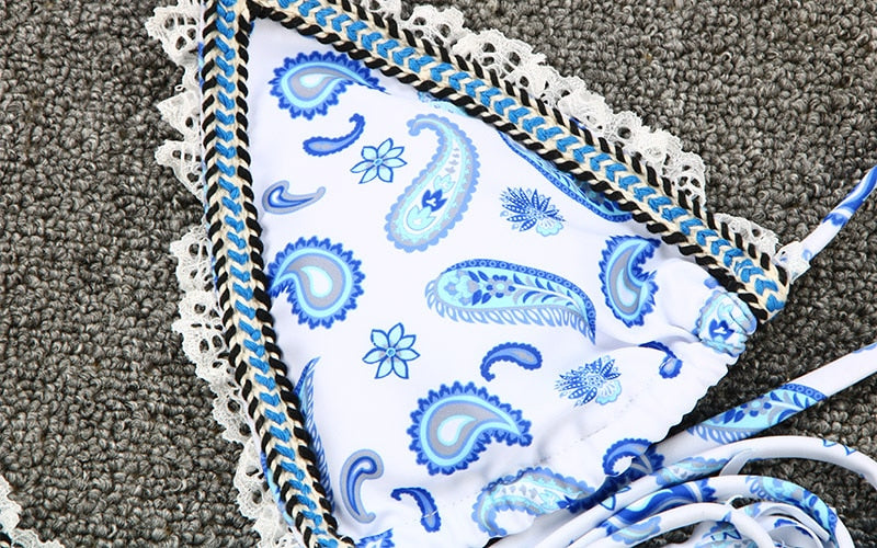 2 Piece Micro print swimsuit female triangle swimwear women bathers Tie up bathing suit Beachwear Bikini Set