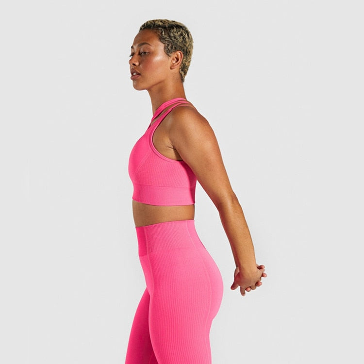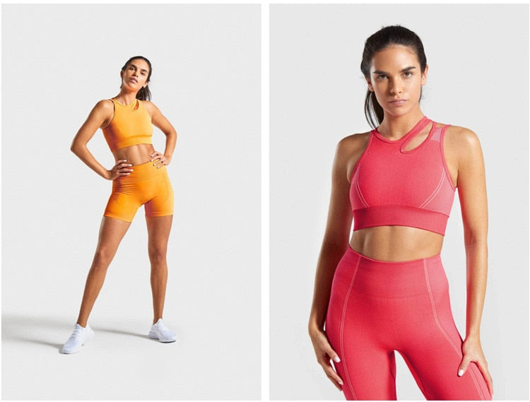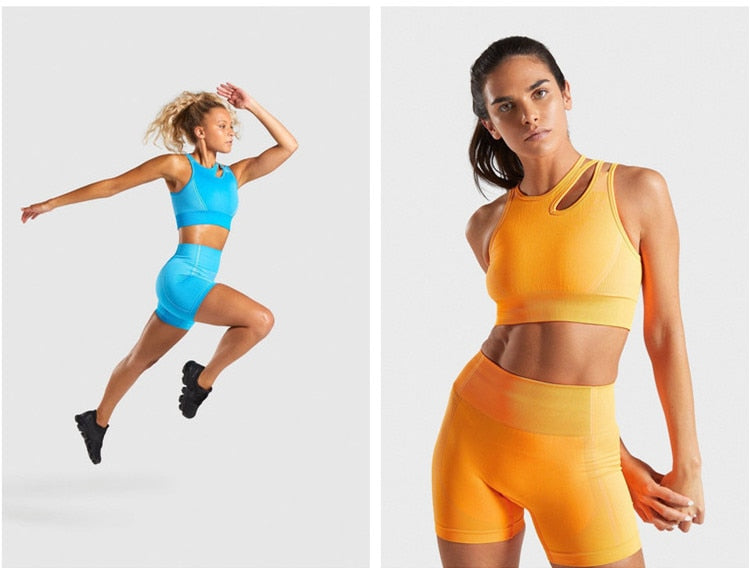 2 Piece Seamless Sports Bras Fitness Shorts Yoga Set Gym Breathable Stretch Sports Suit Running Training Wear