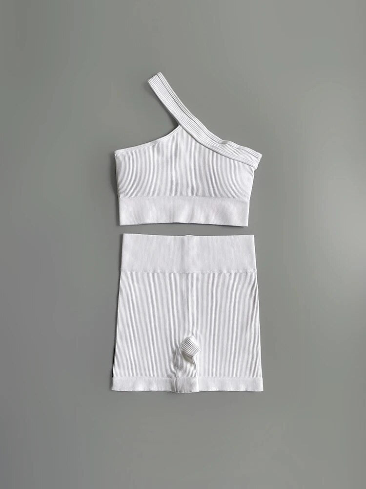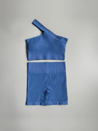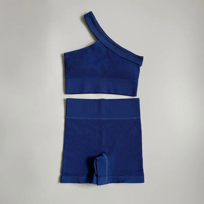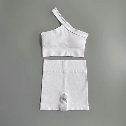2 Piece Seamless Women Sport Suit Fitness One Shoulder Yoga Set Push Up Bra Workout Gym Shorts Running Clothing Sportswear Tracksuit