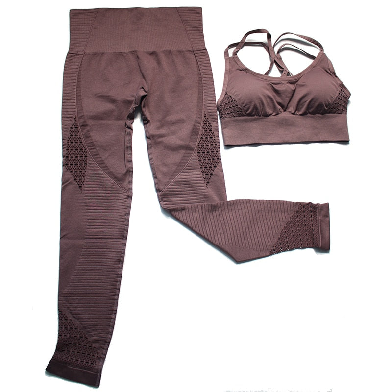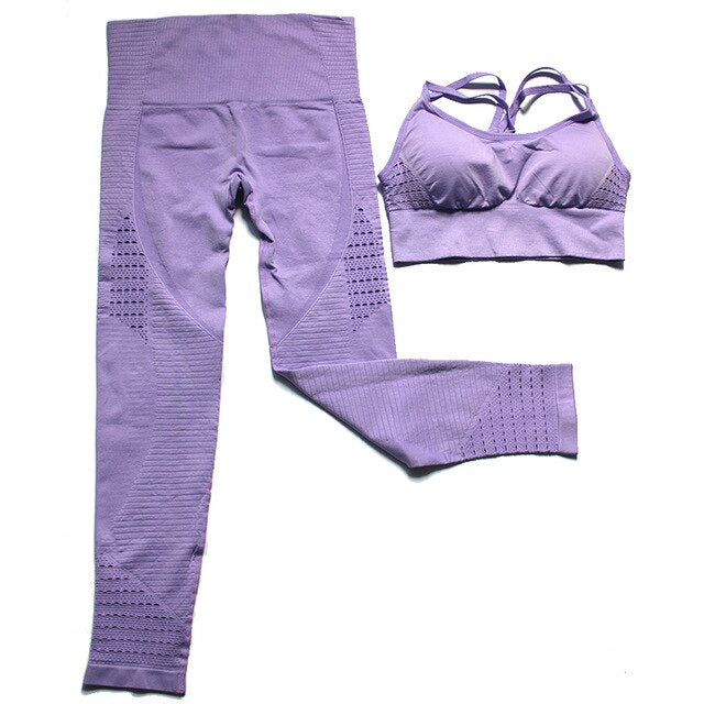 2 Piece Sports Gym Fitness Lifting Pants Sportswear Leggings Padded Push-up Seamless Sports Bra Top Set