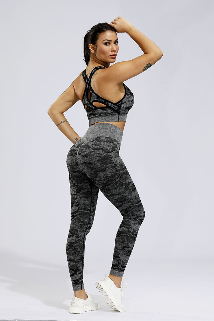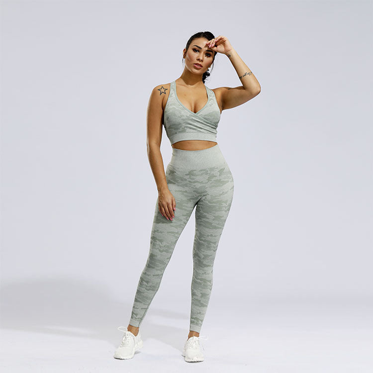 2 Piece Sports Yoga Gym Fitness Camo Athletic Pants Sportswear Leggings Seamless Active Bra Top Set