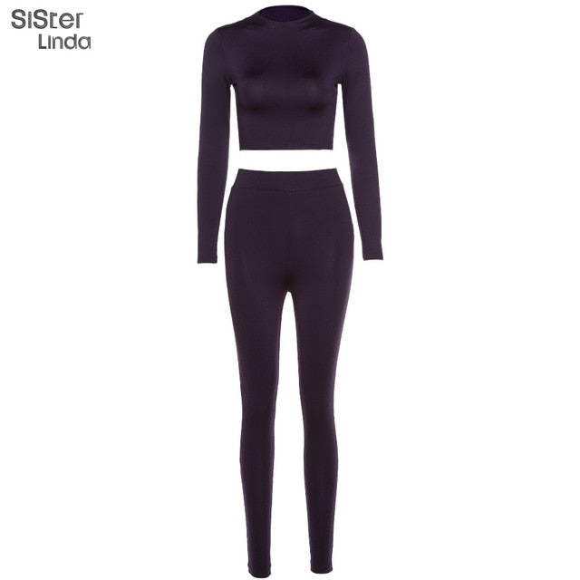 2 Piece Sporty Active Wear Matching Sets Fall Long Sleeve Tops Tees And Leggings Workout Outfits Sportwear
