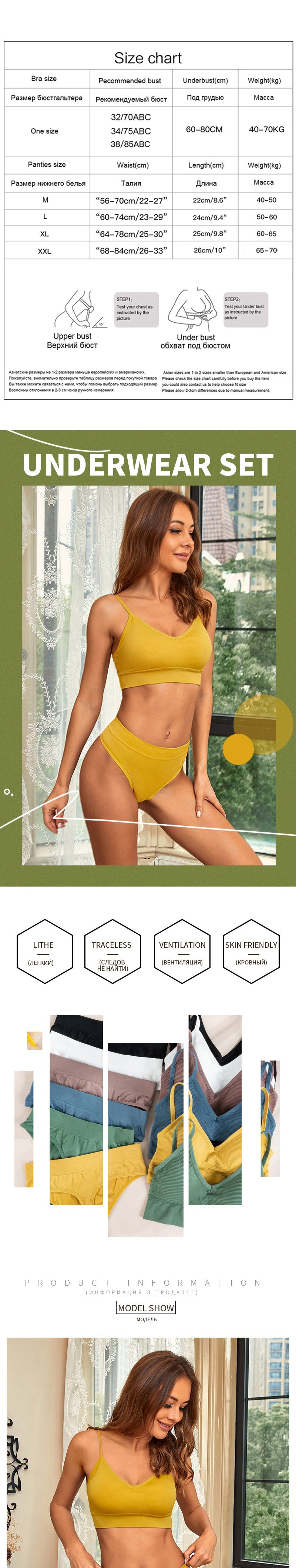 2 Piece Bra Set Bralette Underwear Lingerie Ribbed Tops Seamless Wire Free Bra and Panty Set