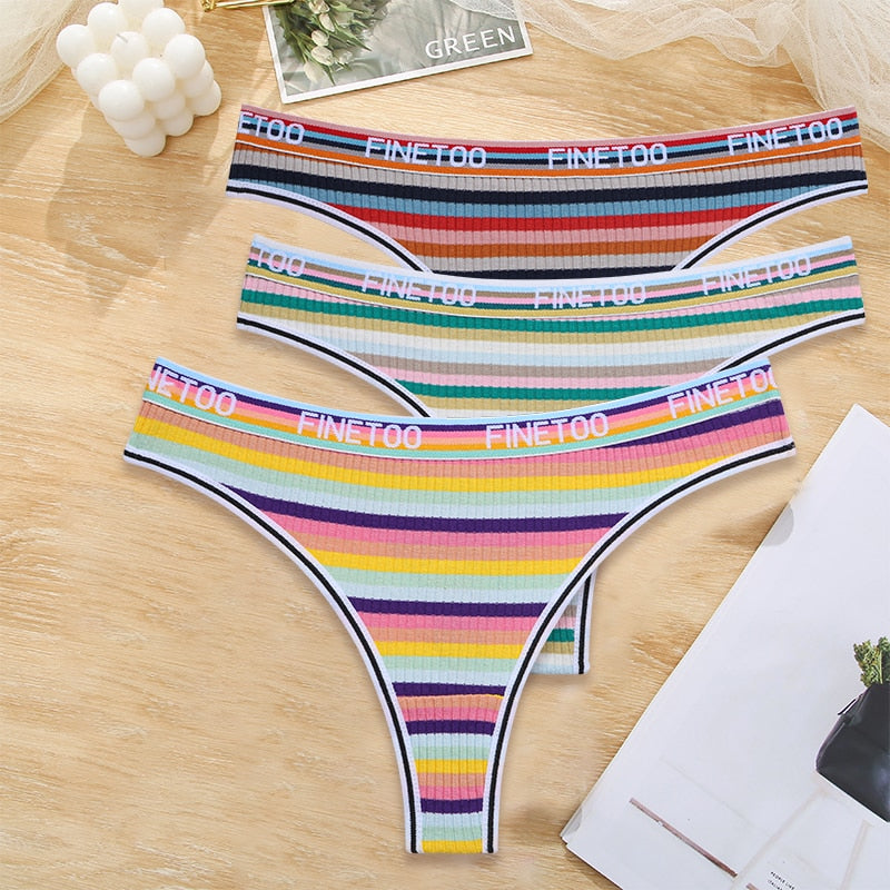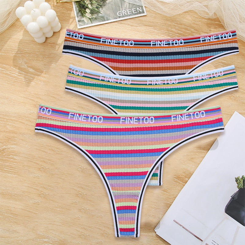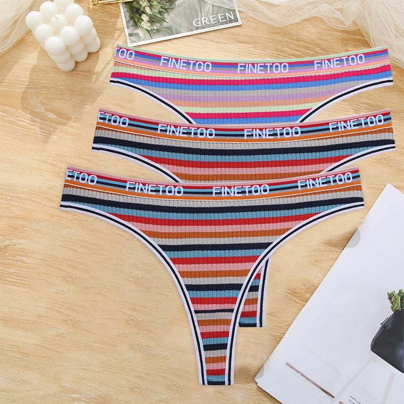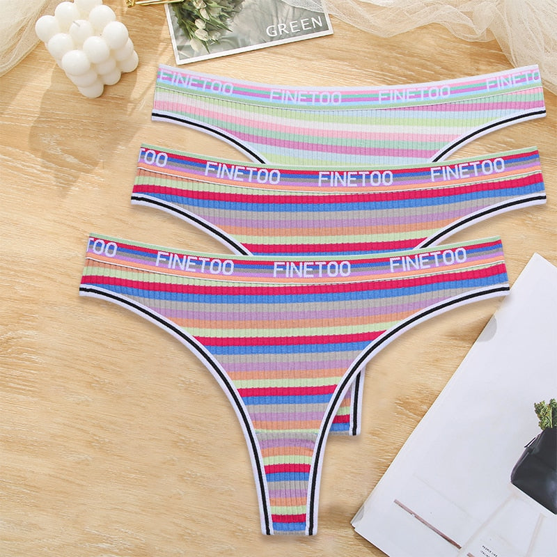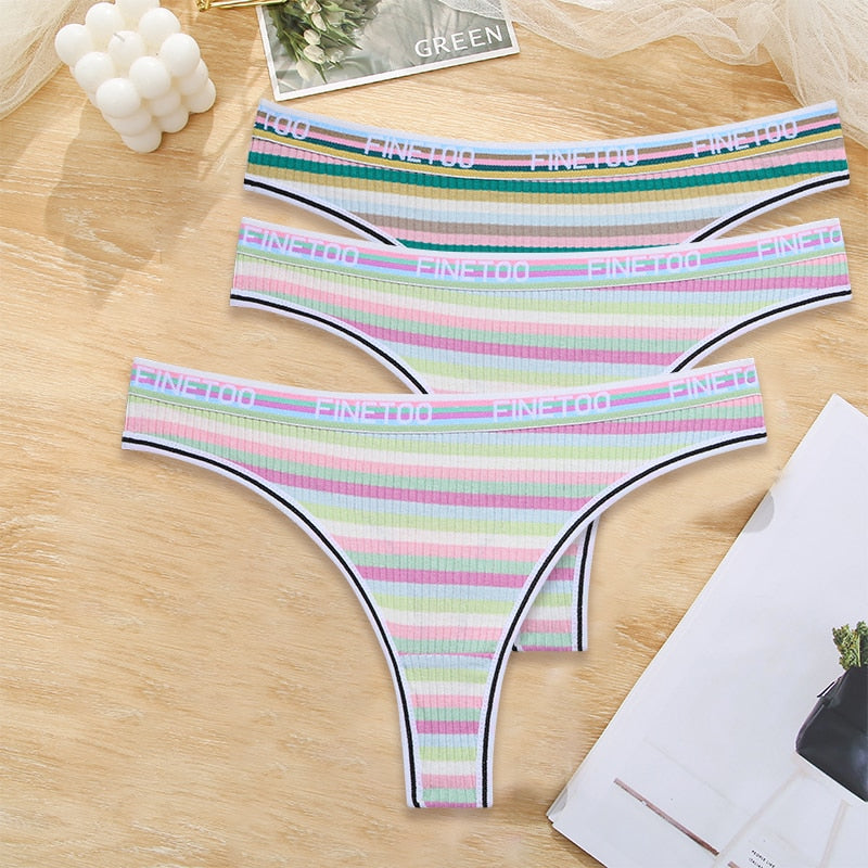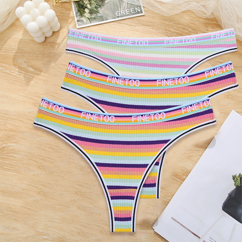 Pay in 4 instalments with AfterPay, Buy Now Pay Later3 Pack Cotton Mix Seamless G-string Colorful Striped Lingerie Panties S-XL Thongs Female Letter Waist Underwear Briefs
