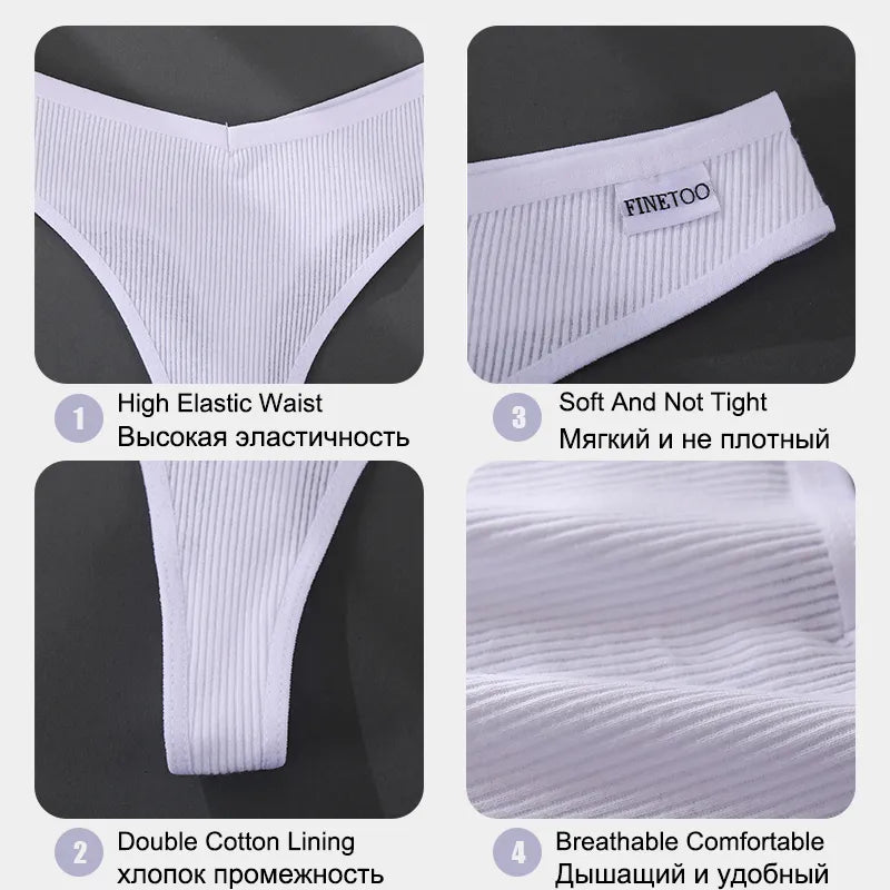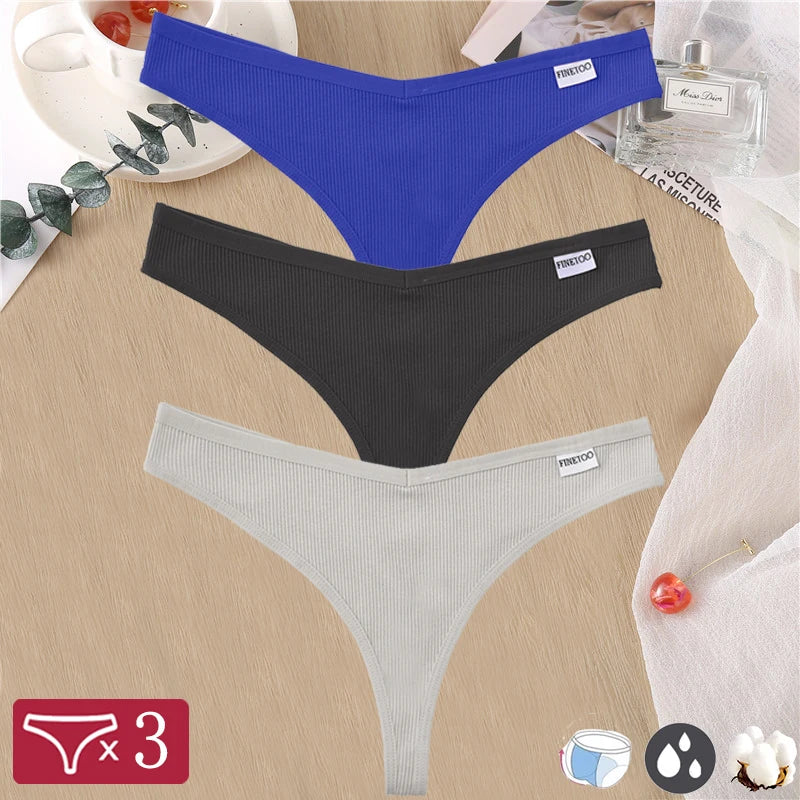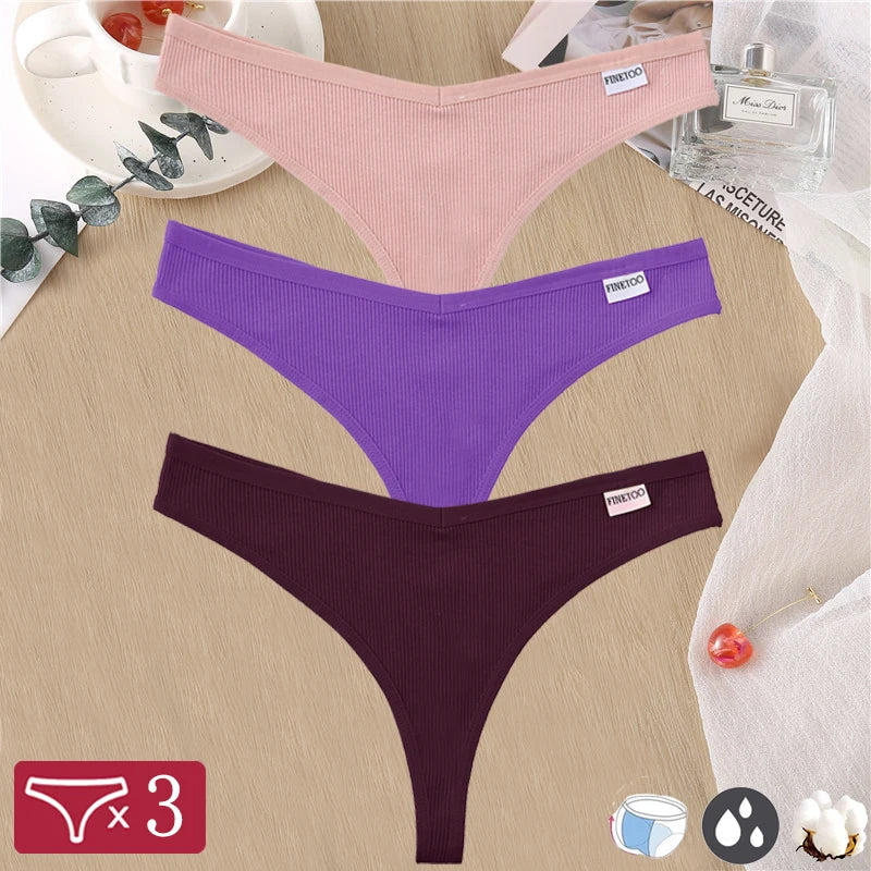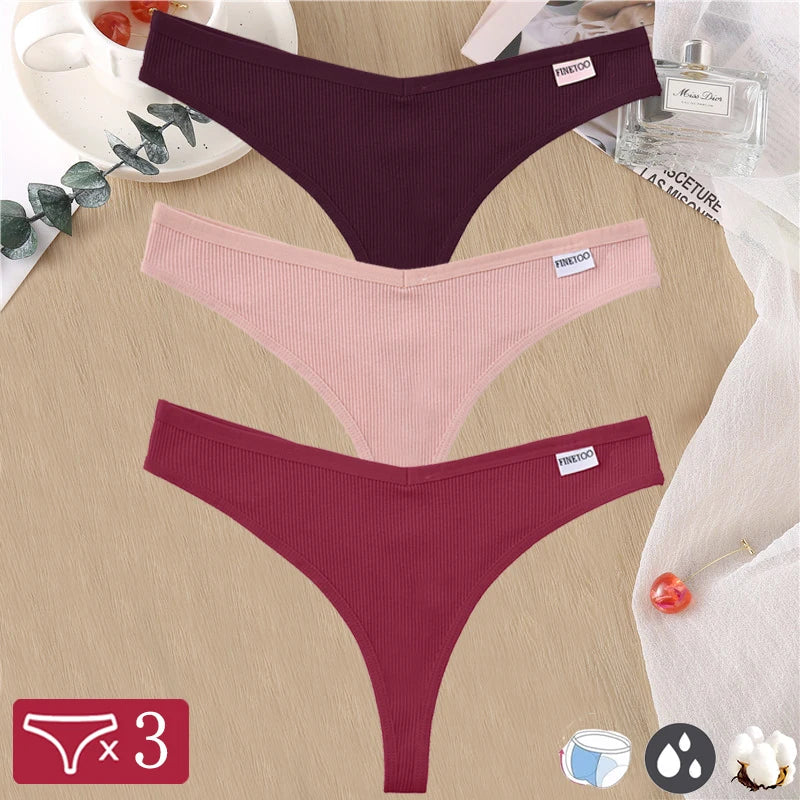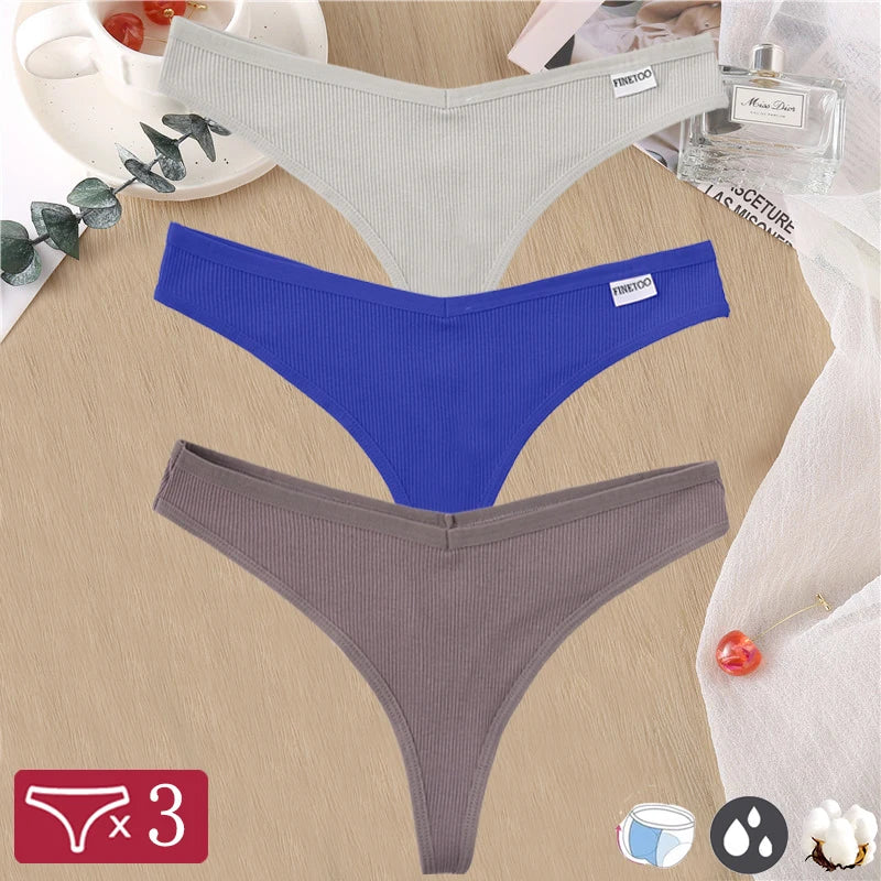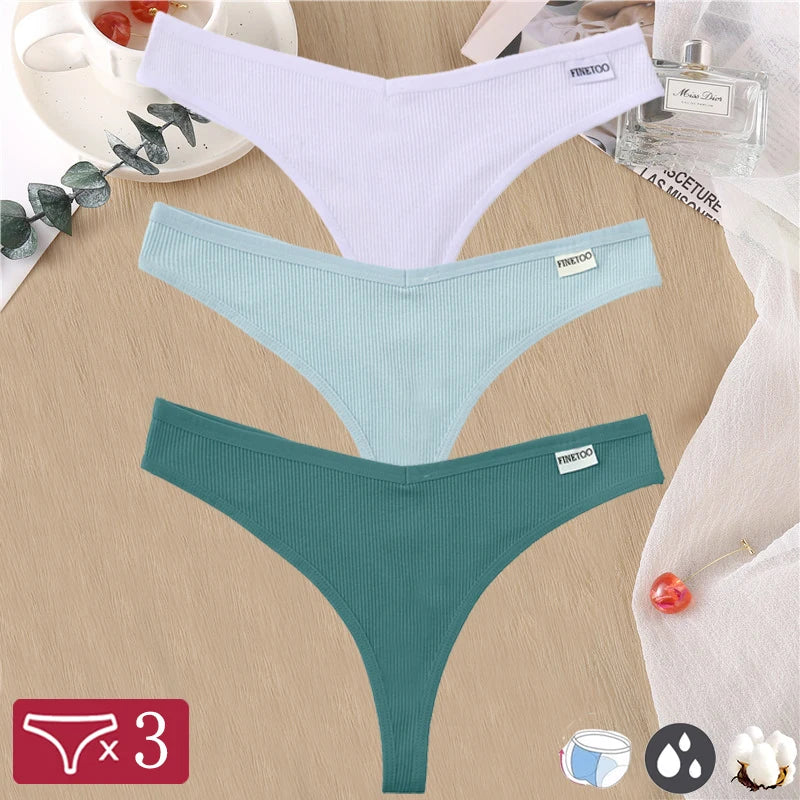 Pay in 4 instalments with AfterPay, Buy Now Pay Later3 Pack Cotton Thongs Lady Solid V-Waist Stripe Panties Breathable G-String Underwear Soft Intimates Lingerie