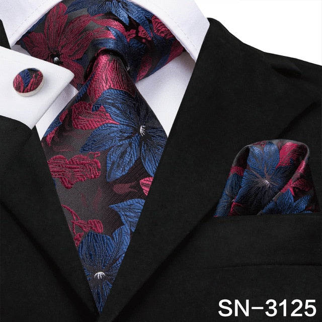 Pay in 4 instalments with AfterPay, Buy Now Pay Later3 Piece 8.5cm Silk Men Floral Red Blue Neckties Classic Party Wedding Pocket Square Cufflinks Luxury Tie Set