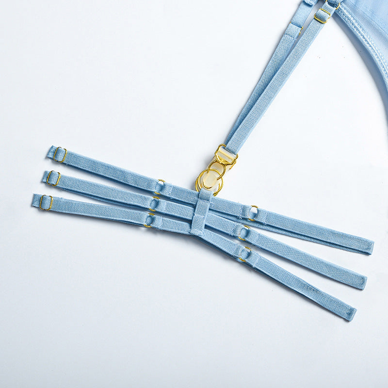 Tips: Bra have Underwire, 4-Piece Sets of Necklace +Bra + Briefs + Garters.