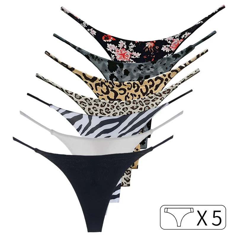5 Pack Cotton G String Leopard Women Panties Flower Briefs Thong Low Waist T-back Underwear Seamless Lingerie