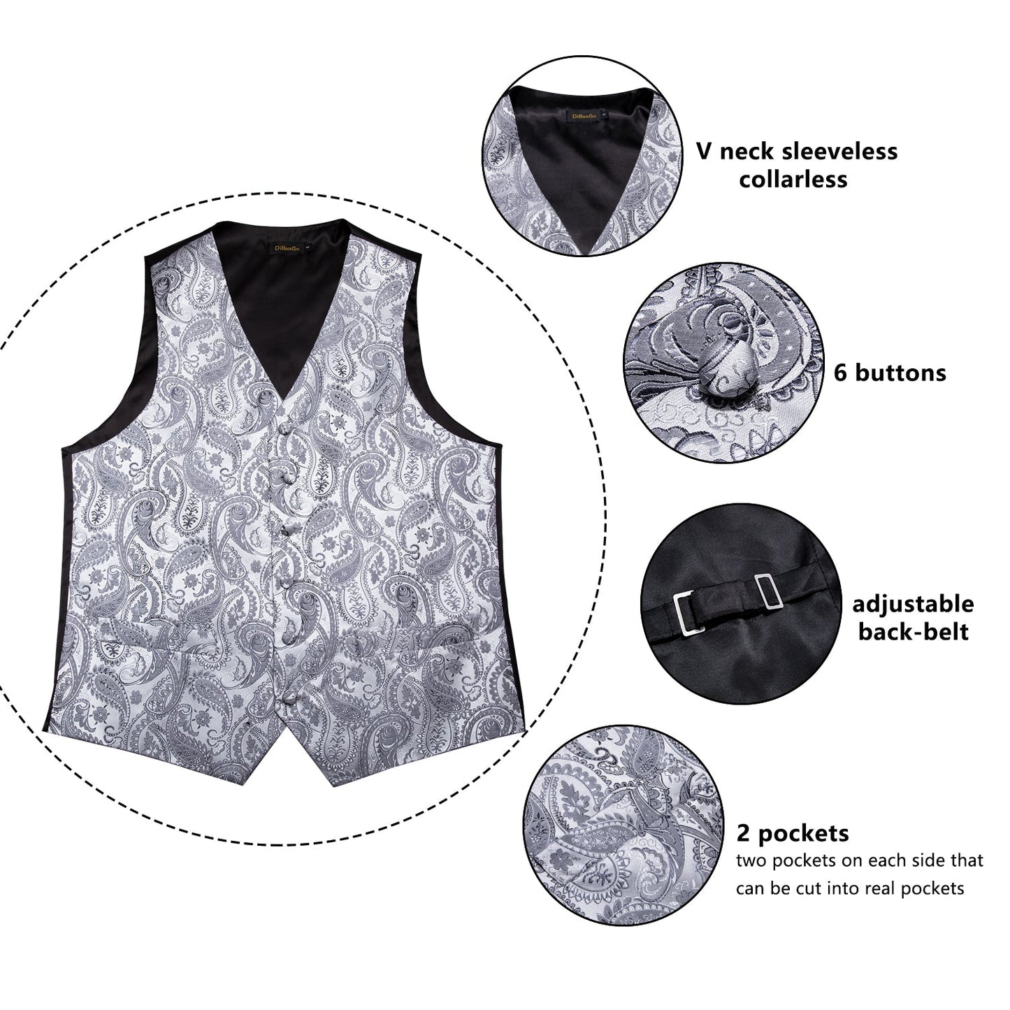 Pay in 4 instalments with AfterPay, Buy Now Pay Later5 Piece Vests Slim Fit Mens Wedding Suit Casual Sleeveless Formal Business Waistcoat Hanky Necktie Bow Tie Set