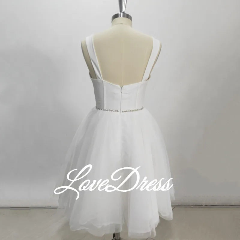 A-Line Sweetheart Short Wedding Backless Tulle Bride Gown Sleeveless Zipper Bridal Dress