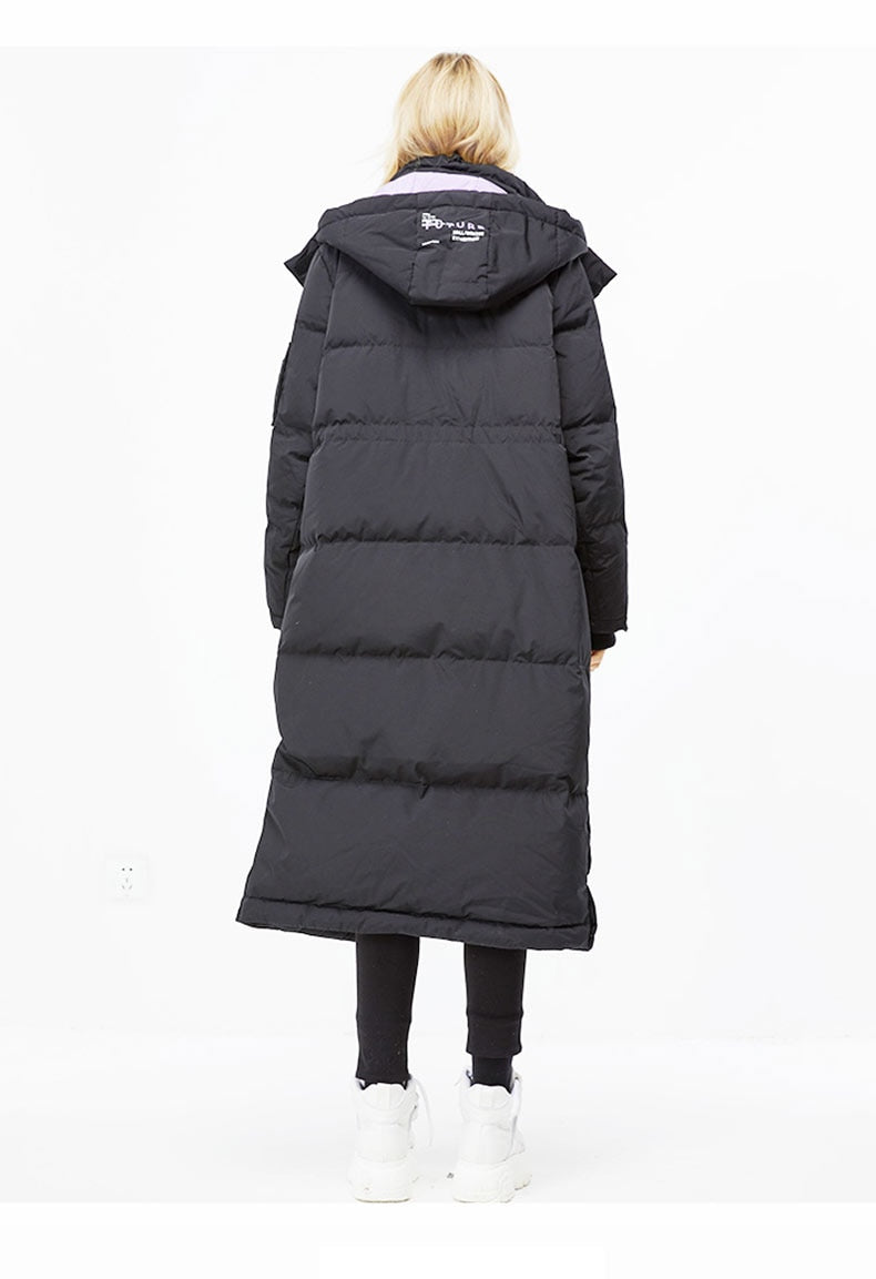 Autum Winter New Arrivals Long Loose Fit Contrasting Parka Down Jacket