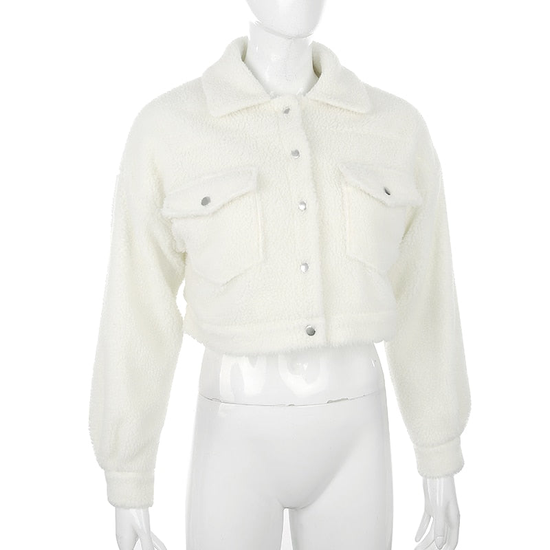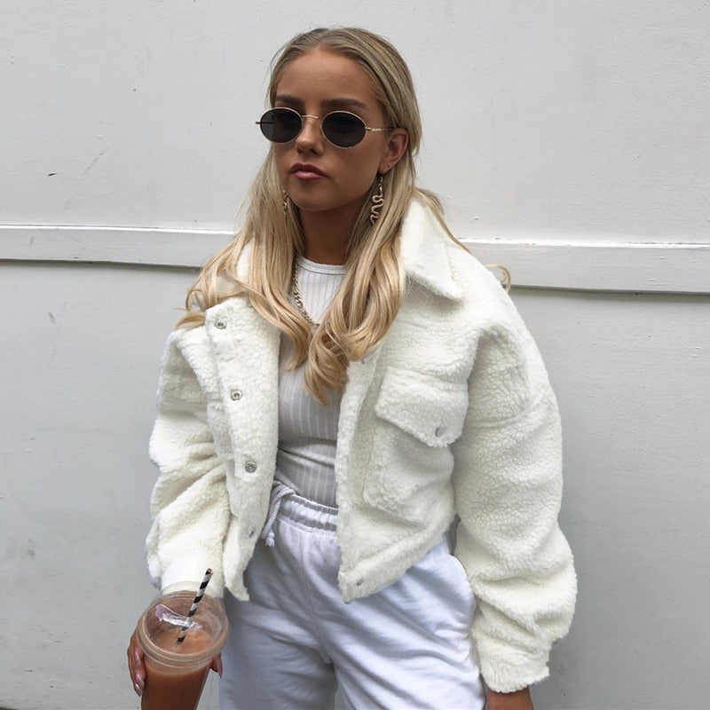 Pay in 4 instalments with AfterPay, Buy Now Pay LaterAutumn Winter Coat Fleece Shaggy Warm Cropped Overcoat Single Breasted Outerwear Jacket