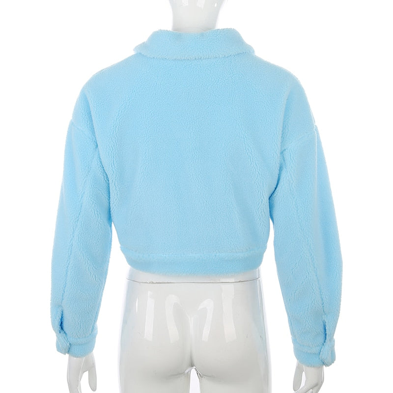 Autumn Winter Coat Fleece Shaggy Warm Cropped Overcoat Single Breasted Outerwear Jacket