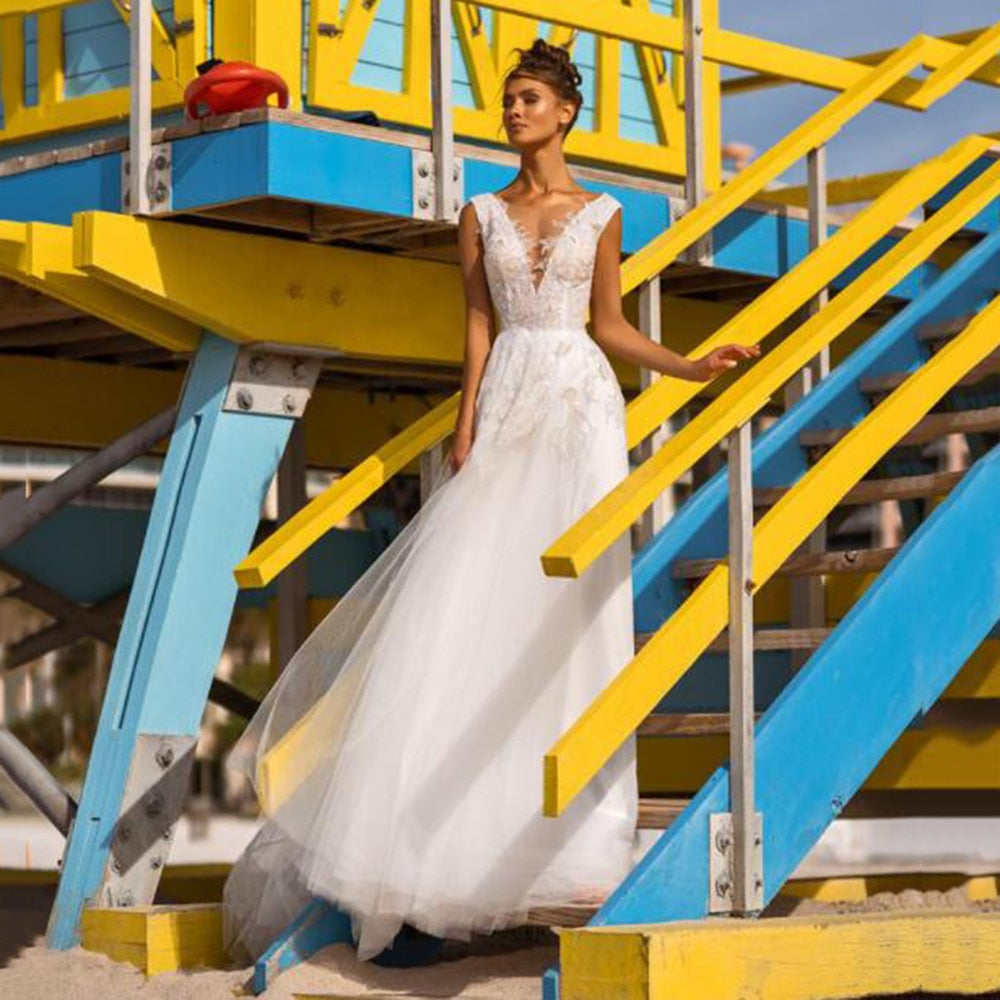 Beach Wedding Dress Simple V Neck Simple Lace Appliques Boho Bridal Dress Plus Size Backless Bridal Gowns