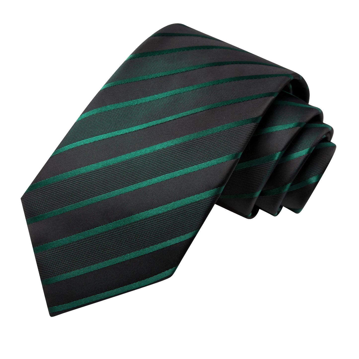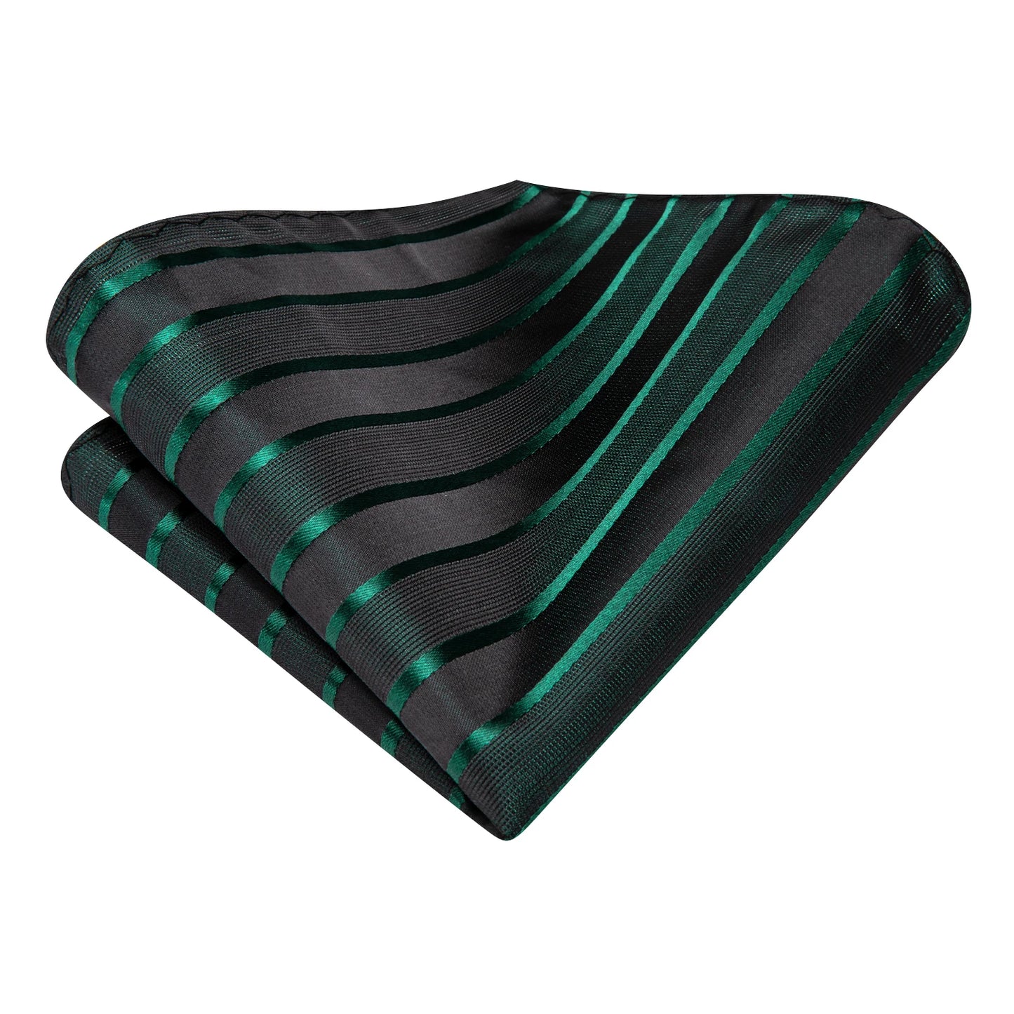 Black Green Striped Silk Ties Wedding Accessories Mens Necktie Pocket Square Cufflinks Gift Set