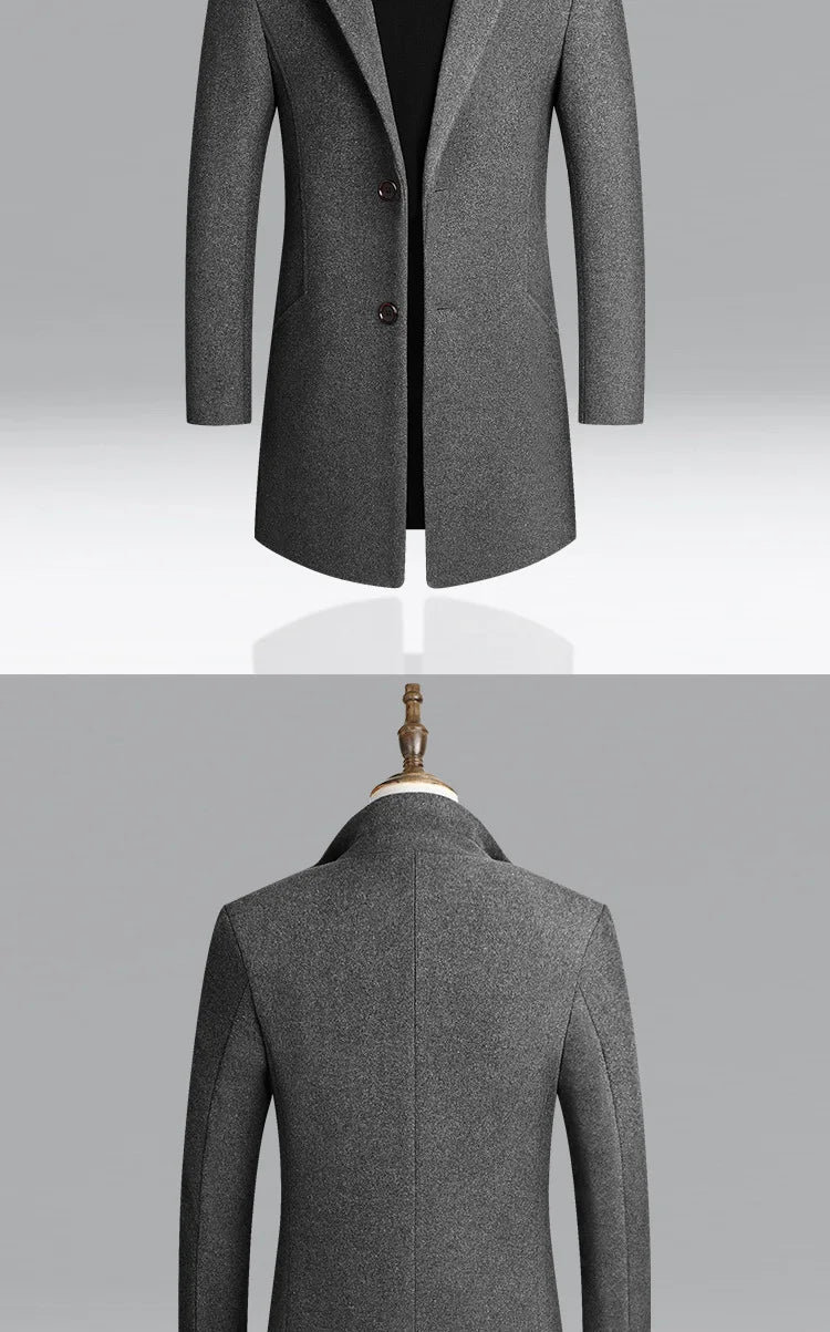 Business Casual Trench Coat Men Style Winter Coat Men's Autumn and Winter Wool Mix Coat Jacket