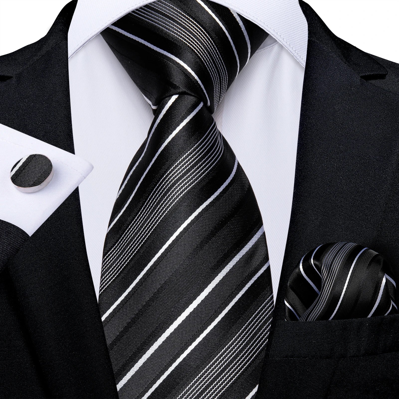 Gift elegance with this men’s luxury silk tie set. Includes 8cm striped necktie, pocket square & cufflinks. Ideal for grooms, professionals & special occasions.