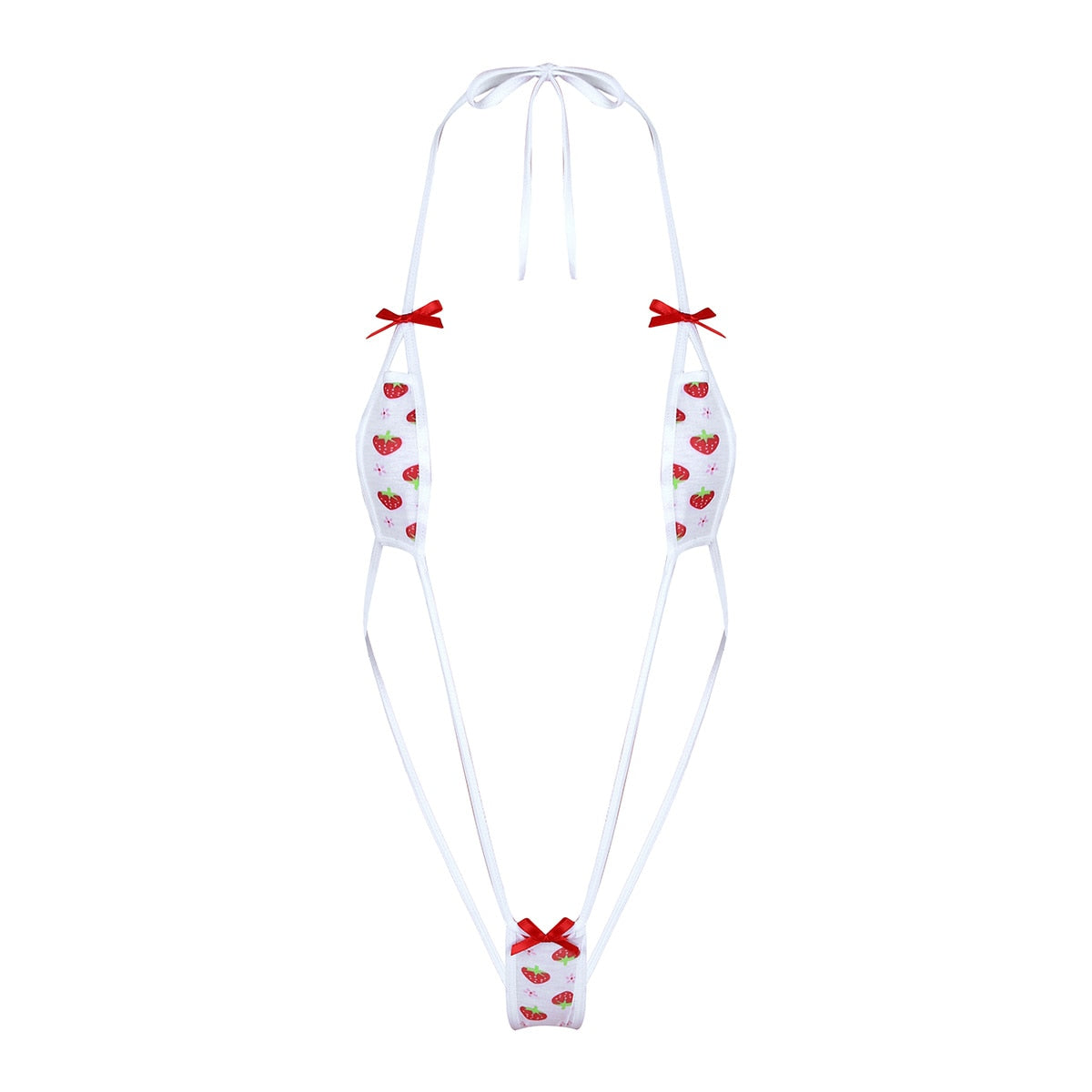 Cosplay Lingerie Body Catsuit Cute Strawberry Halter Neck Mini Micro Bikini Babydoll Costume Underwear