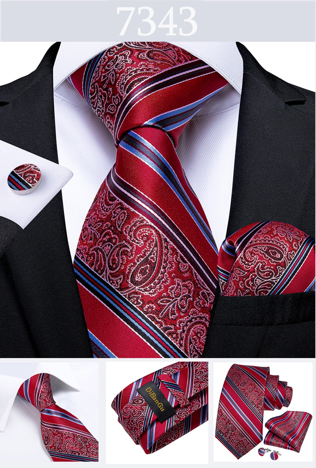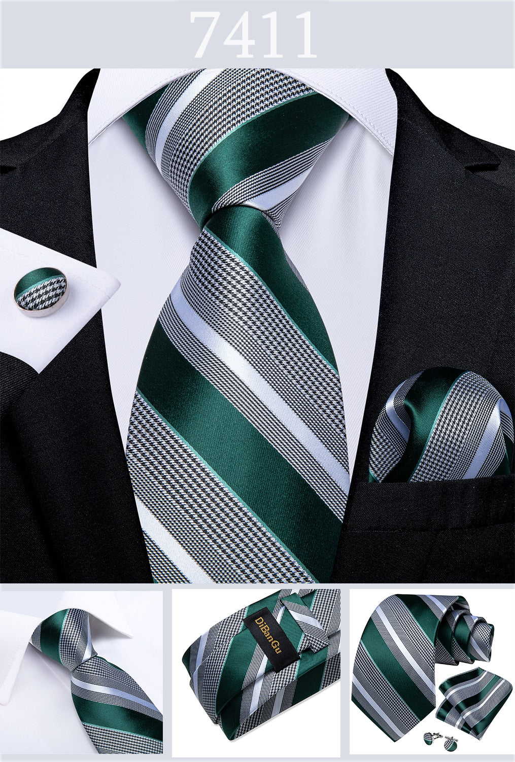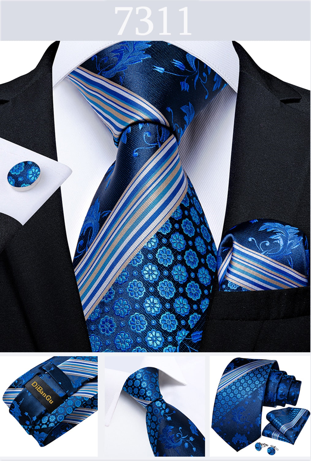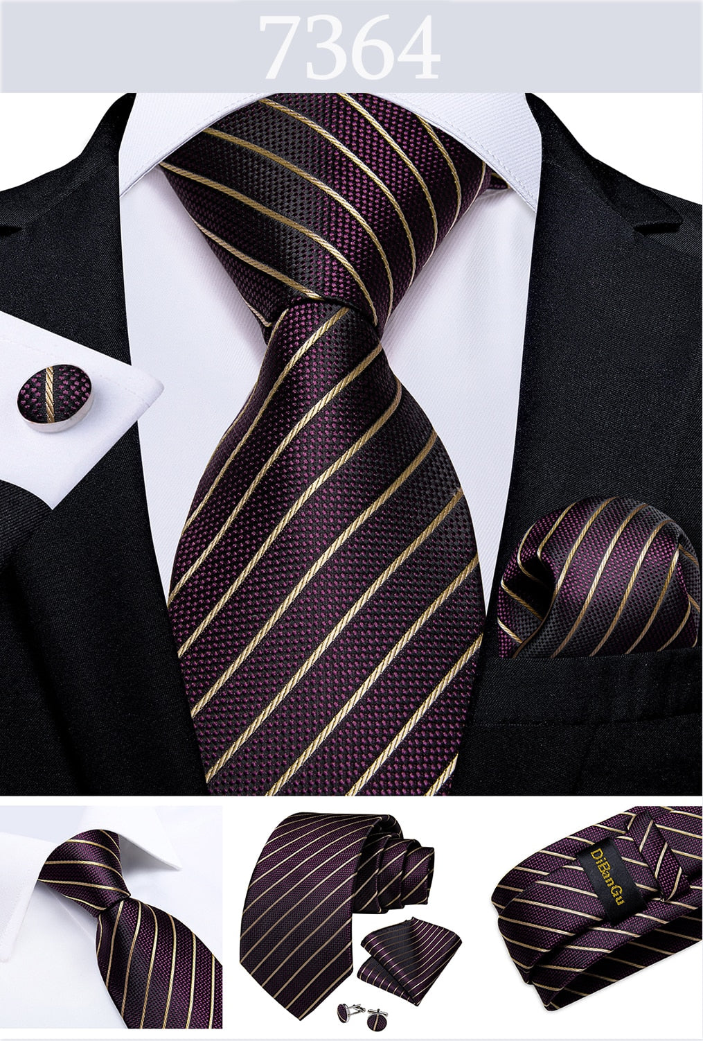 3 Piece Designer Men's Wedding Tie Gold Black Striped Silk Neck Ties For Men Hanky Cufflinks Set Business Party Wear