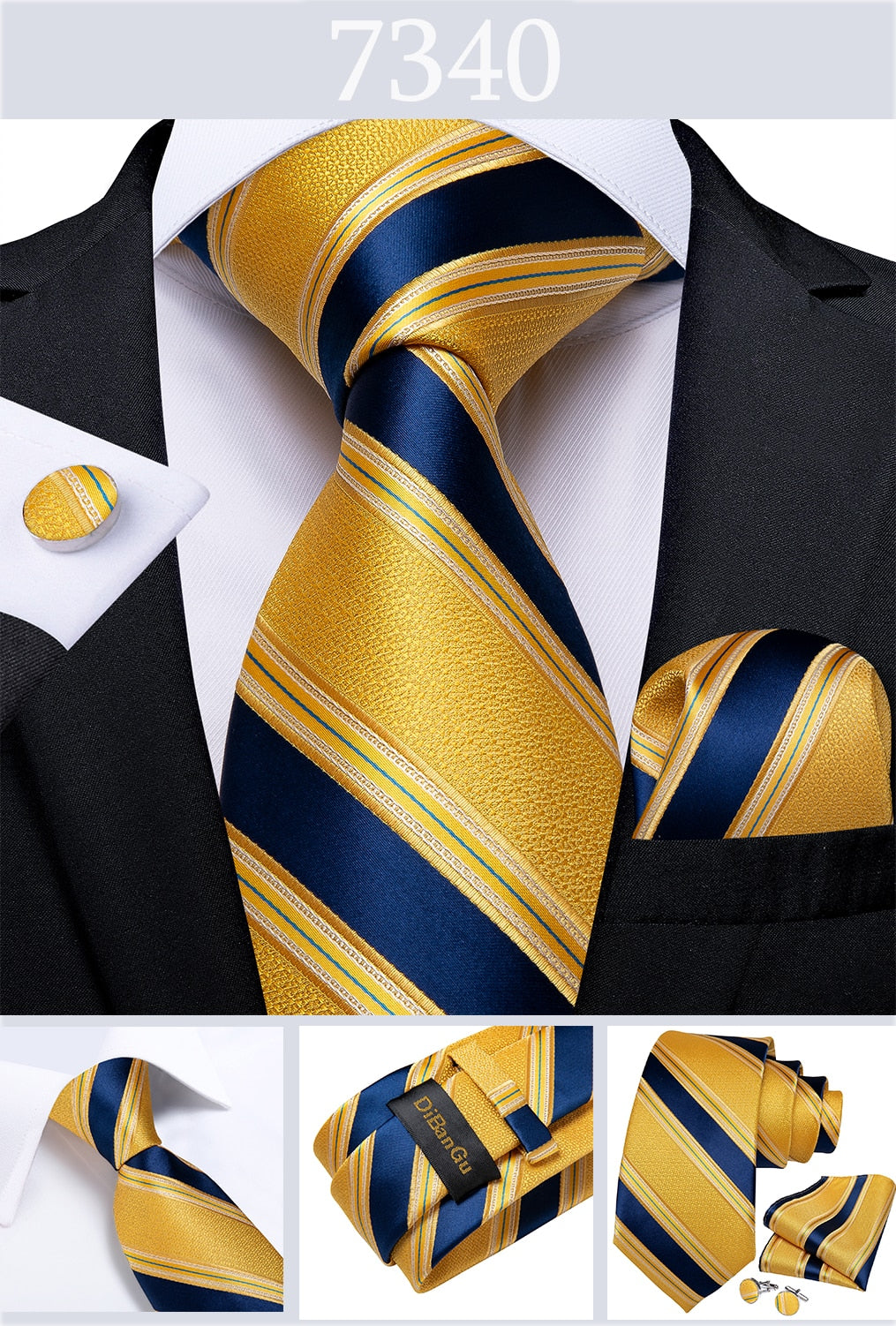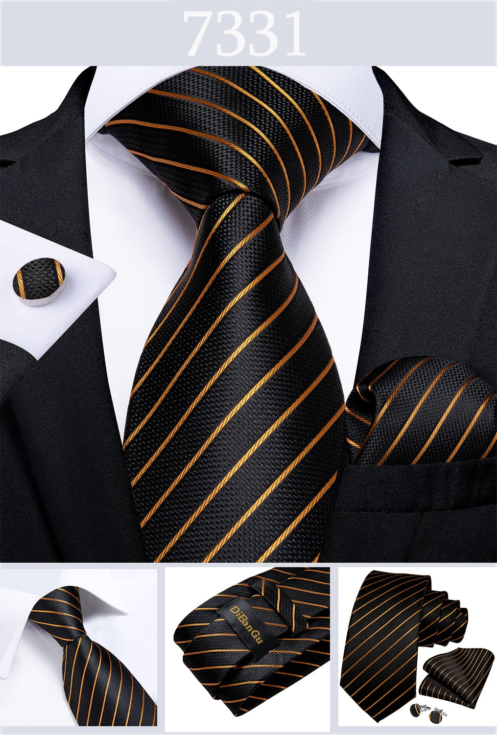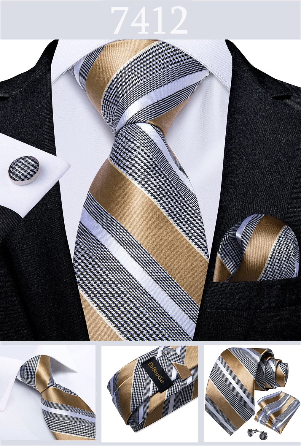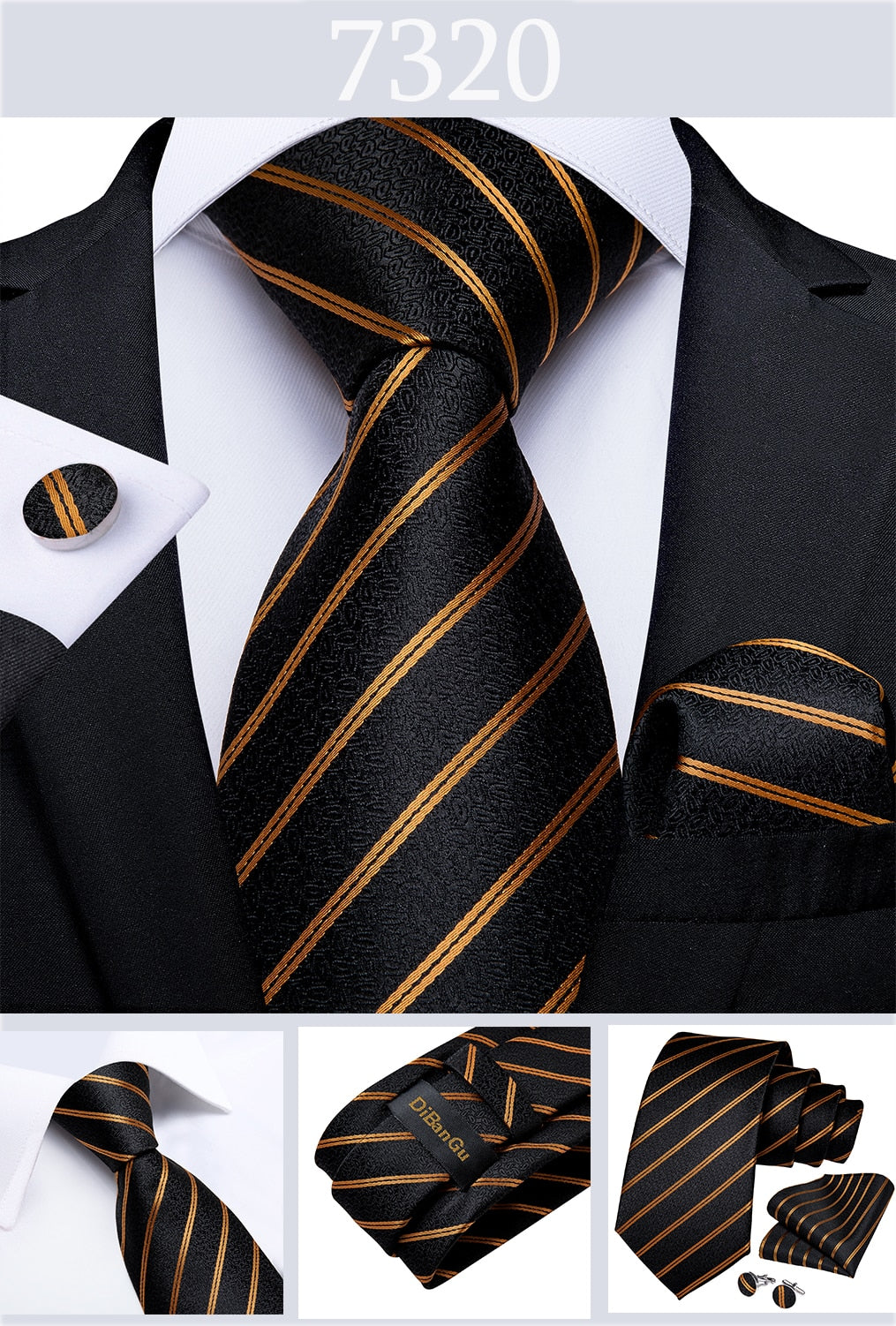 Pay in 4 instalments with AfterPay, Buy Now Pay Later3 Piece Designer Men's Wedding Tie Gold Black Striped Silk Neck Ties For Men Hanky Cufflinks Set Business Party Wear