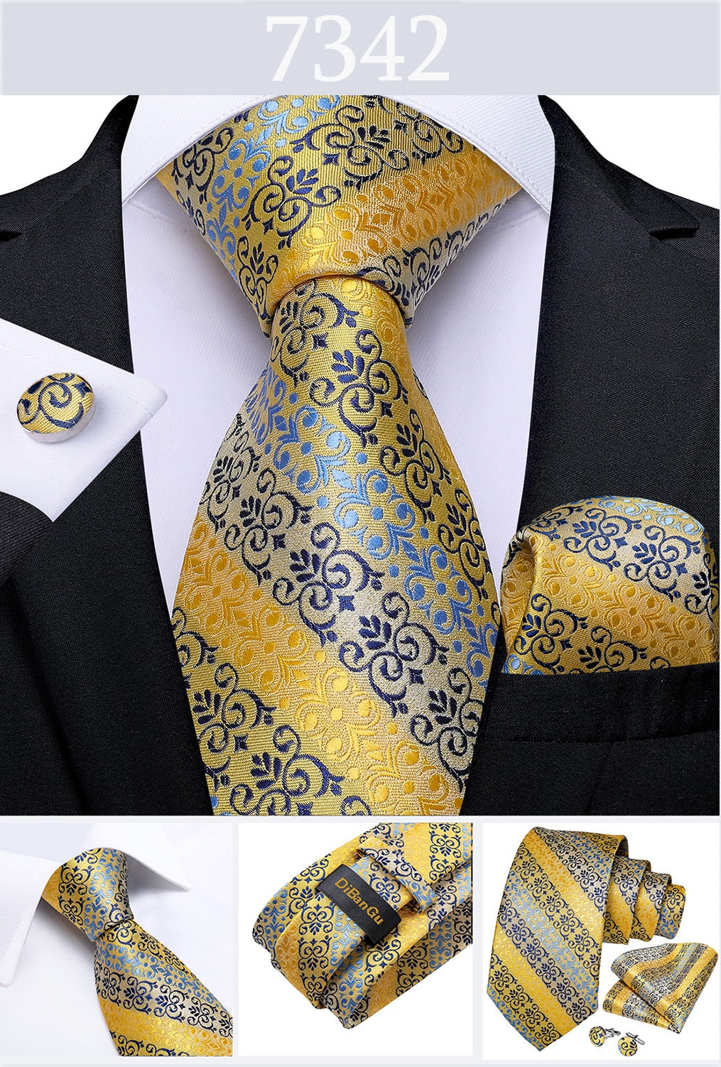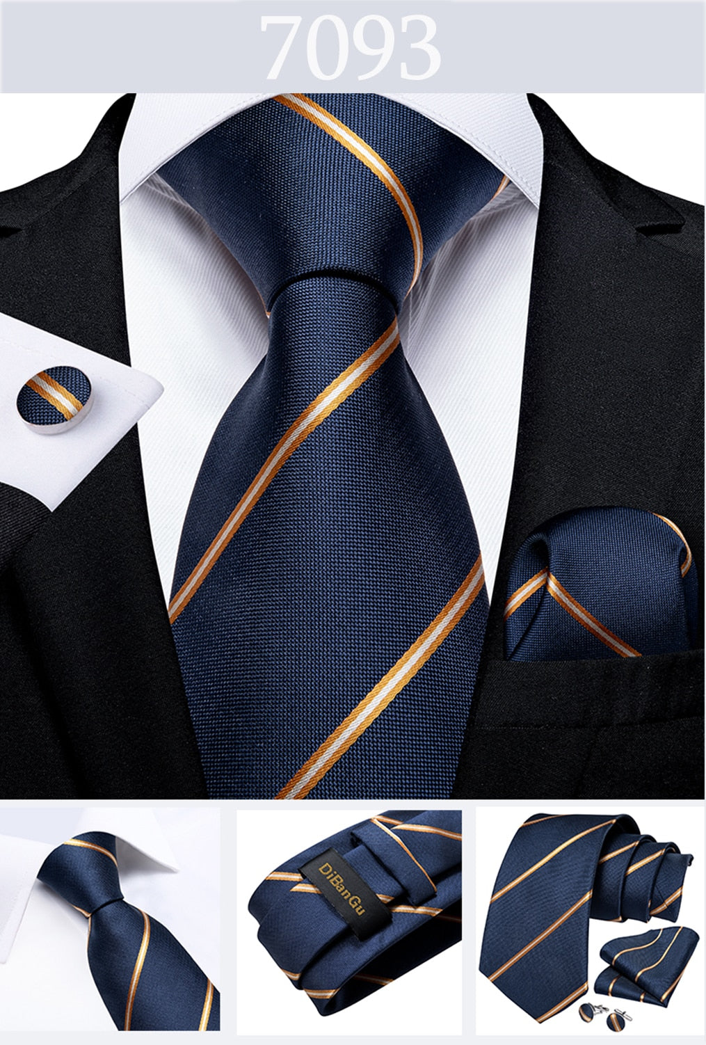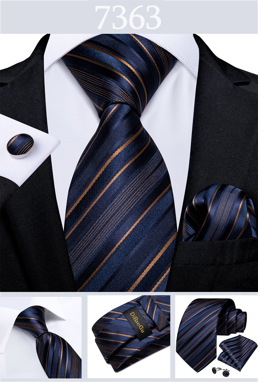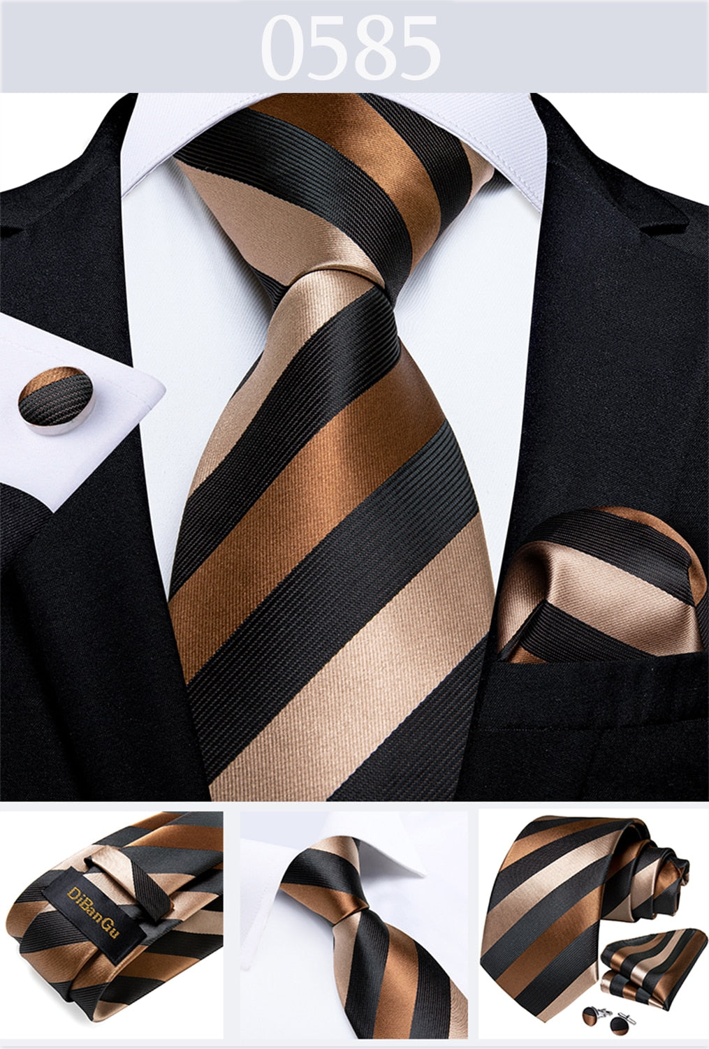 Pay in 4 instalments with AfterPay, Buy Now Pay Later3 Piece Designer Men's Wedding Tie Gold Black Striped Silk Neck Ties For Men Hanky Cufflinks Set Business Party Wear