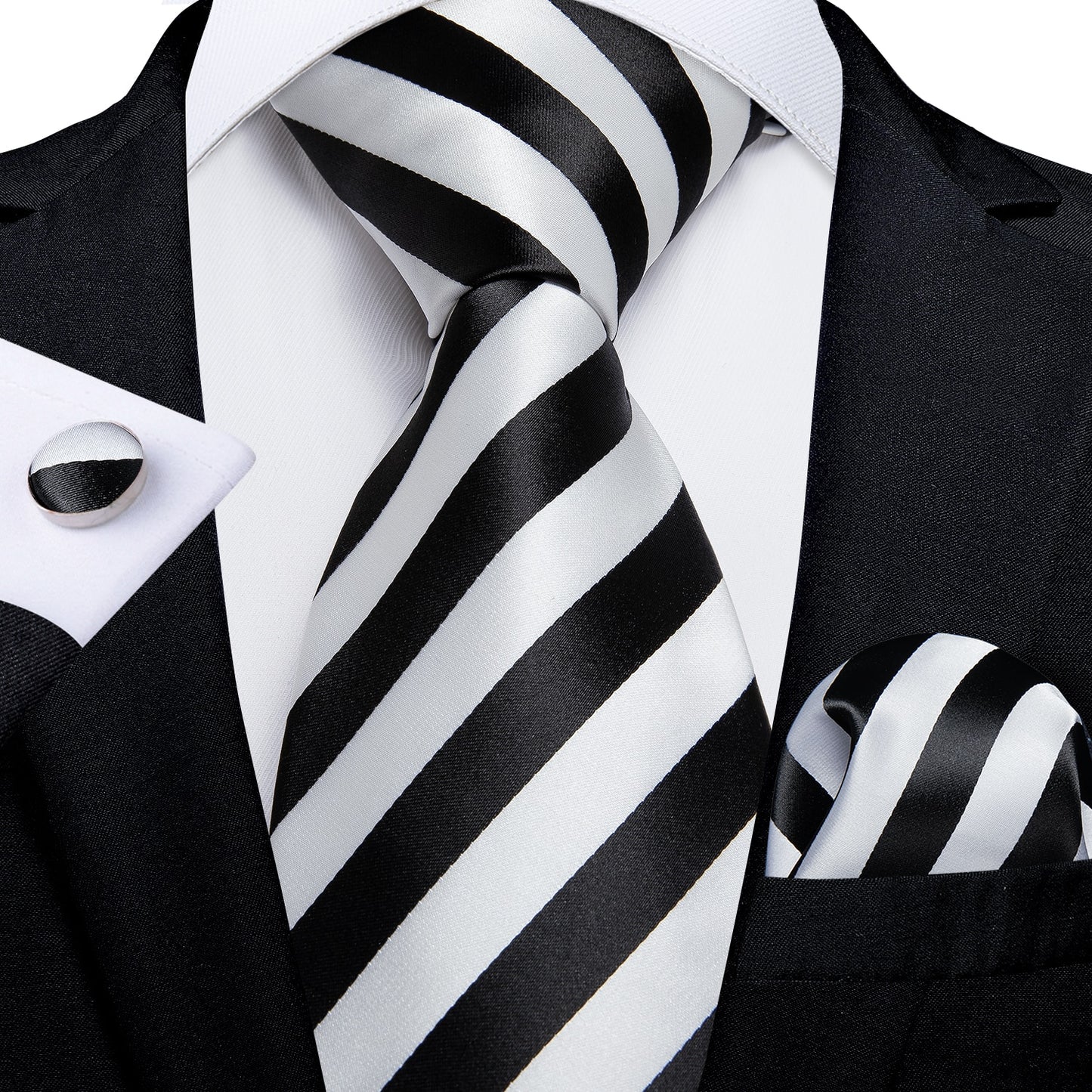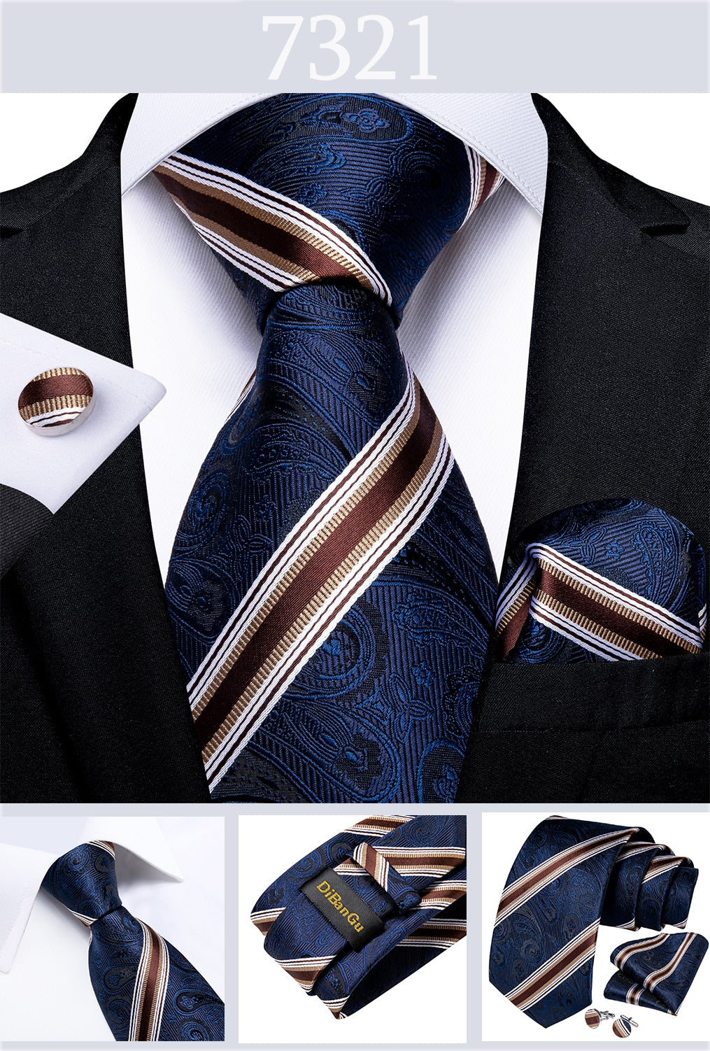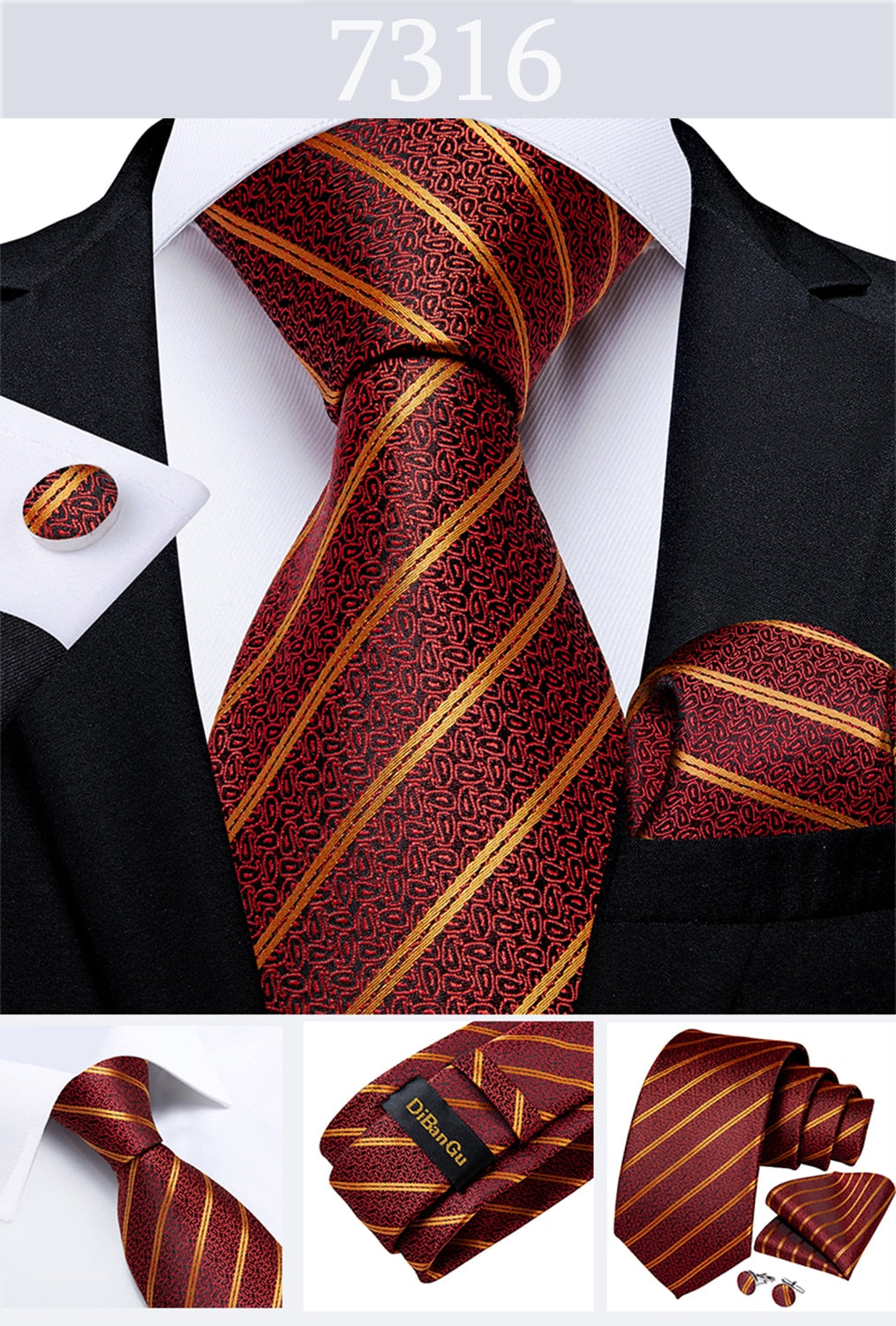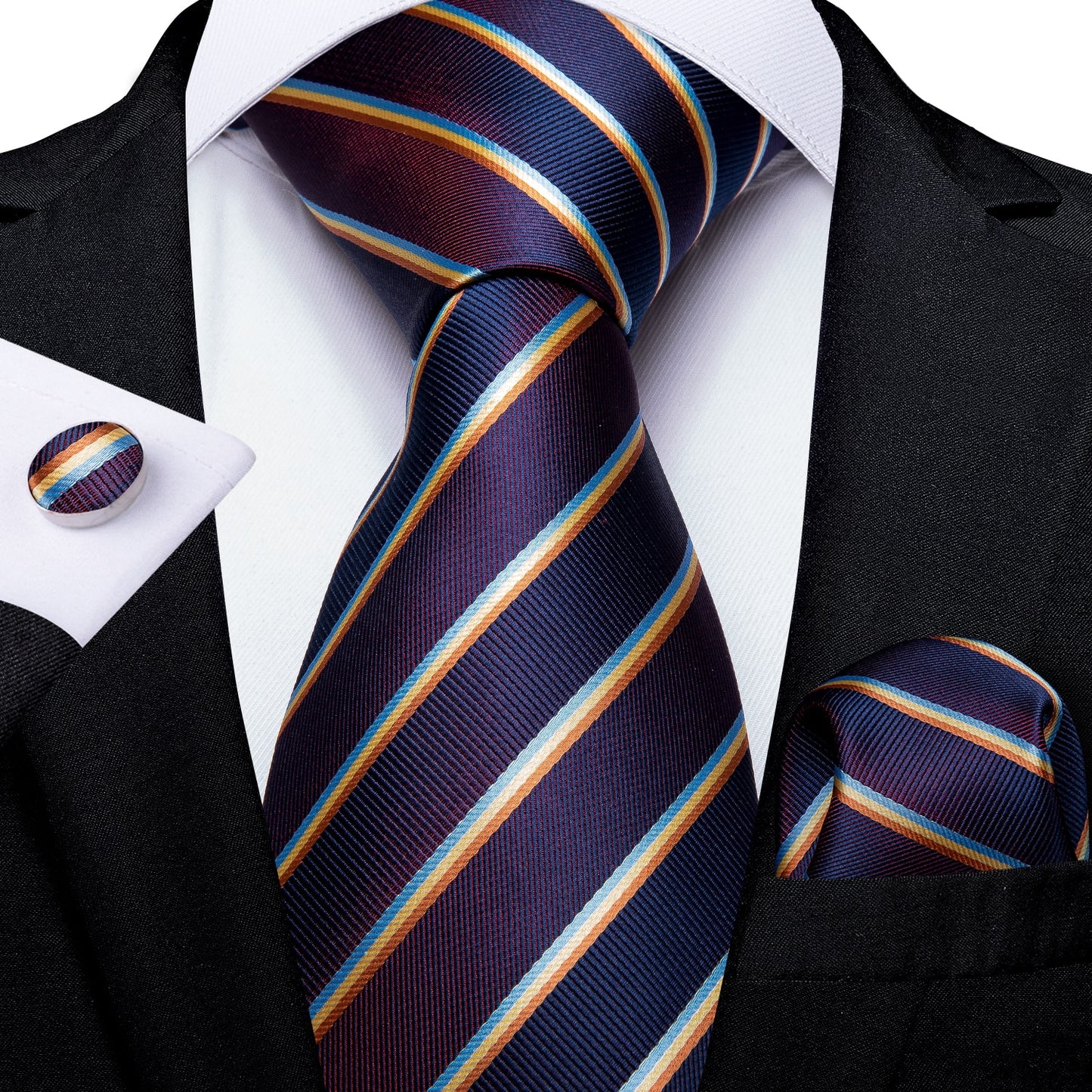 Pay in 4 instalments with AfterPay, Buy Now Pay Later3 Piece Designer Men's Wedding Tie Gold Black Striped Silk Neck Ties For Men Hanky Cufflinks Set Business Party Wear