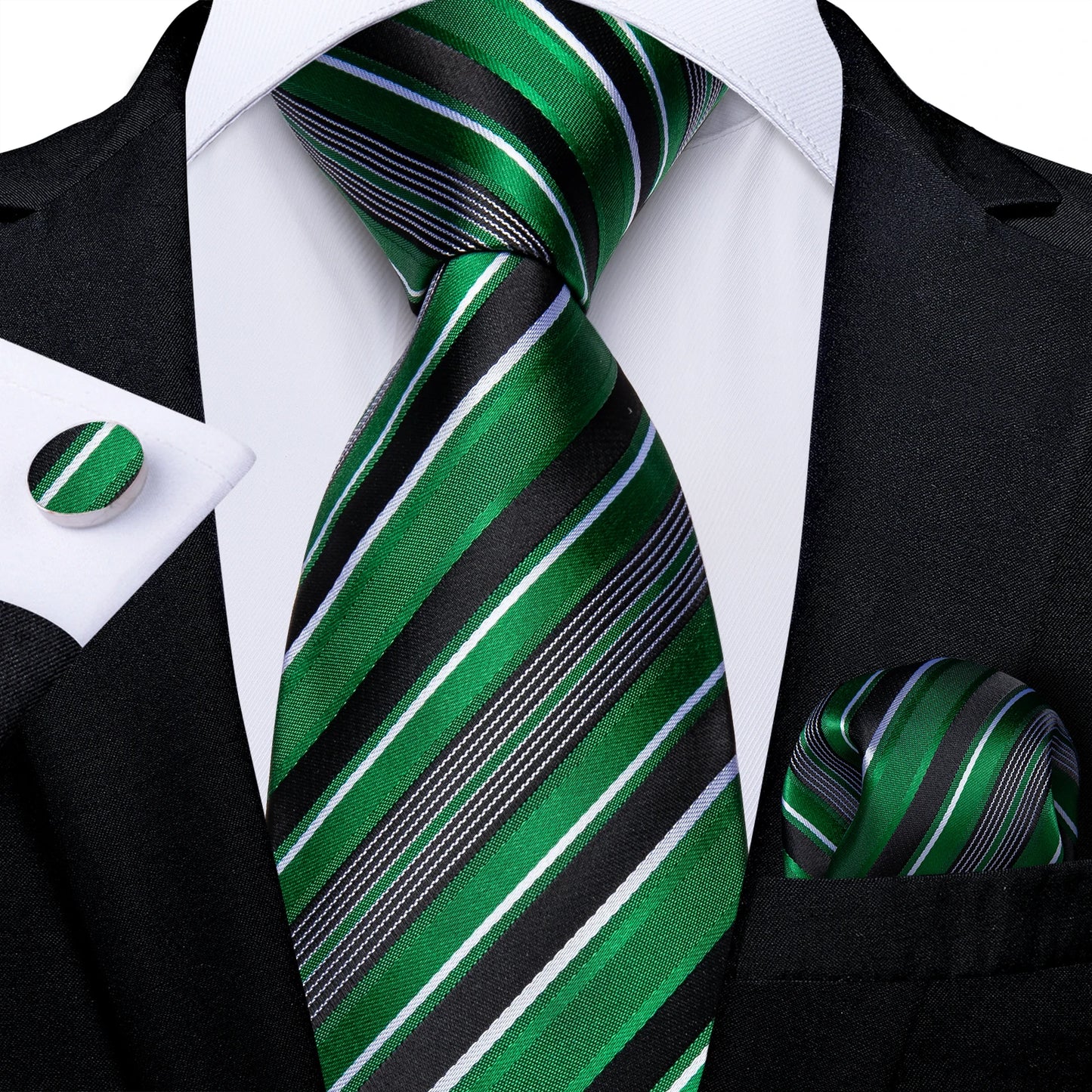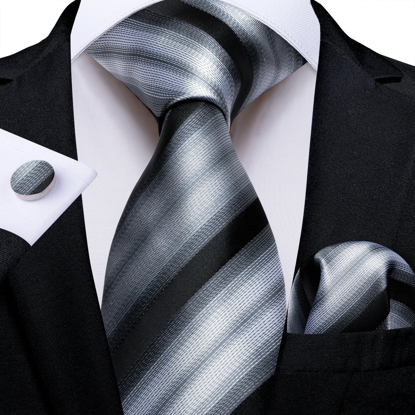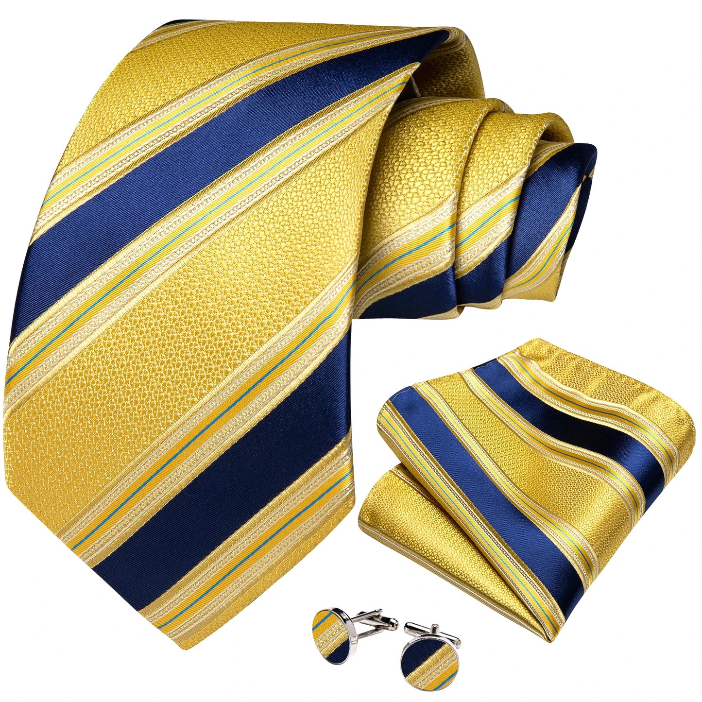 Designer Striped Silk Classic Ties For Men Wedding Accessories Gift For Men Neck Tie Set Pocket Square Cufflinks Set