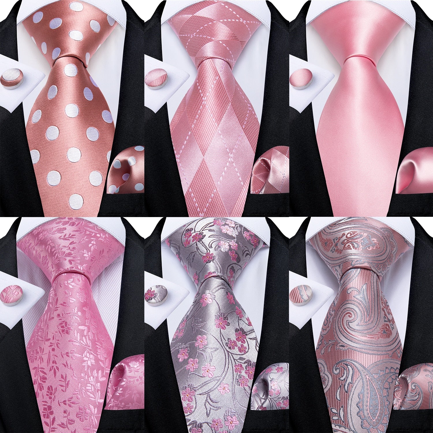 Dot Plaid Paisley Floral Pink Ties For Men 100% Silk Wedding Party Neck Tie Handkerchief Cufflinks Men's Gift Set
