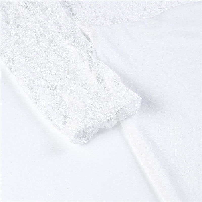 Fancy summer fall off shoulder playsuit jumpsuit long sleeve sheer lace patchwork hollow bandage skinny Outfit set