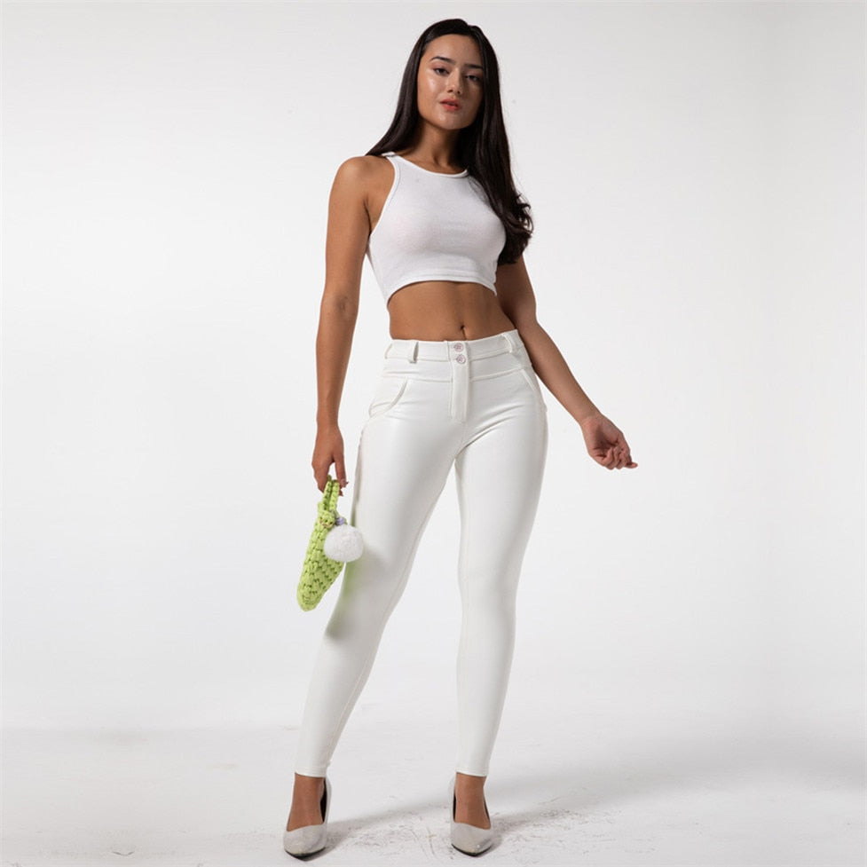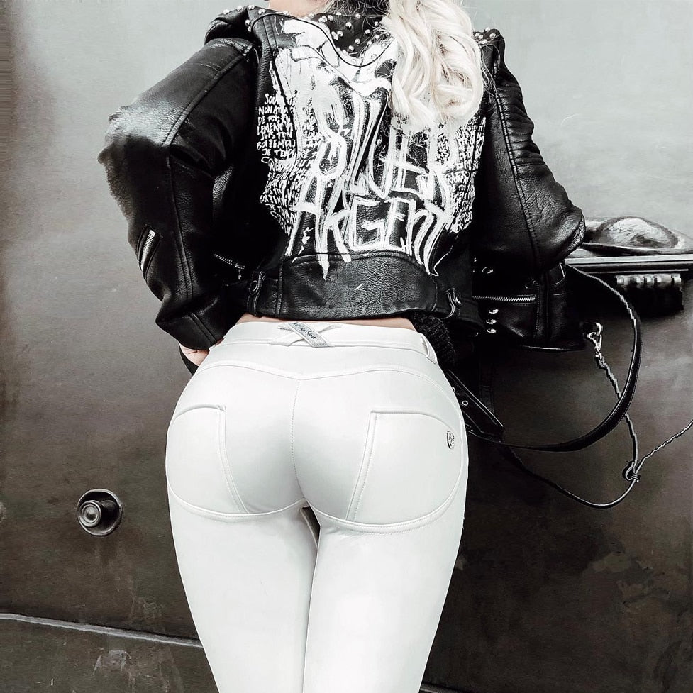 Faux Leather Leggings White Fleece Lined Jeggings Ladies Winter Women's Warm Push Up Casual Pants
