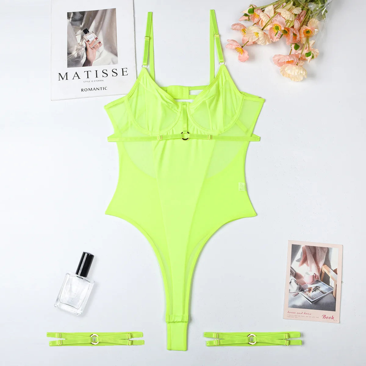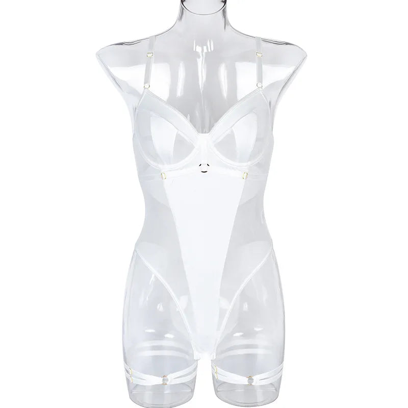 Lace Bodysuit Women's Transparent Lingerie See Through Black Tights Fitness Bodysuit