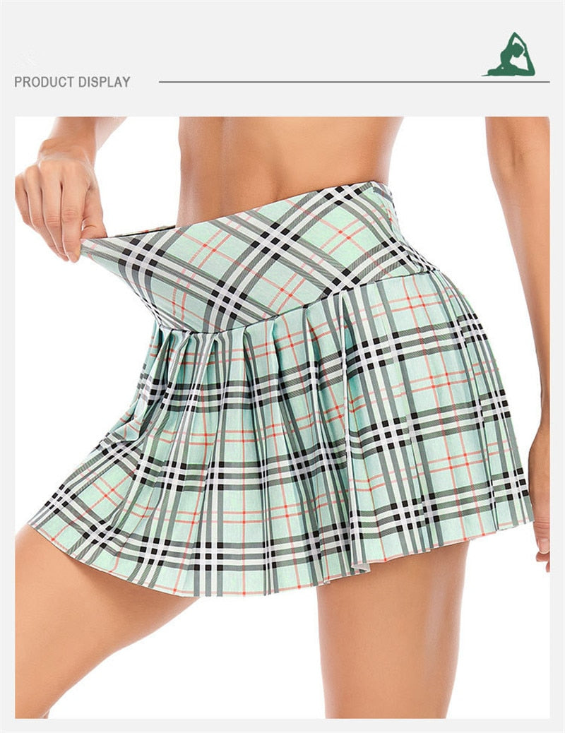 Ladies Summer Tennis Skorts High Waist Stitching Plaid Golf Yoga Dancing Running Fitness Mini Pleated Skirts With Pocket Sportswear