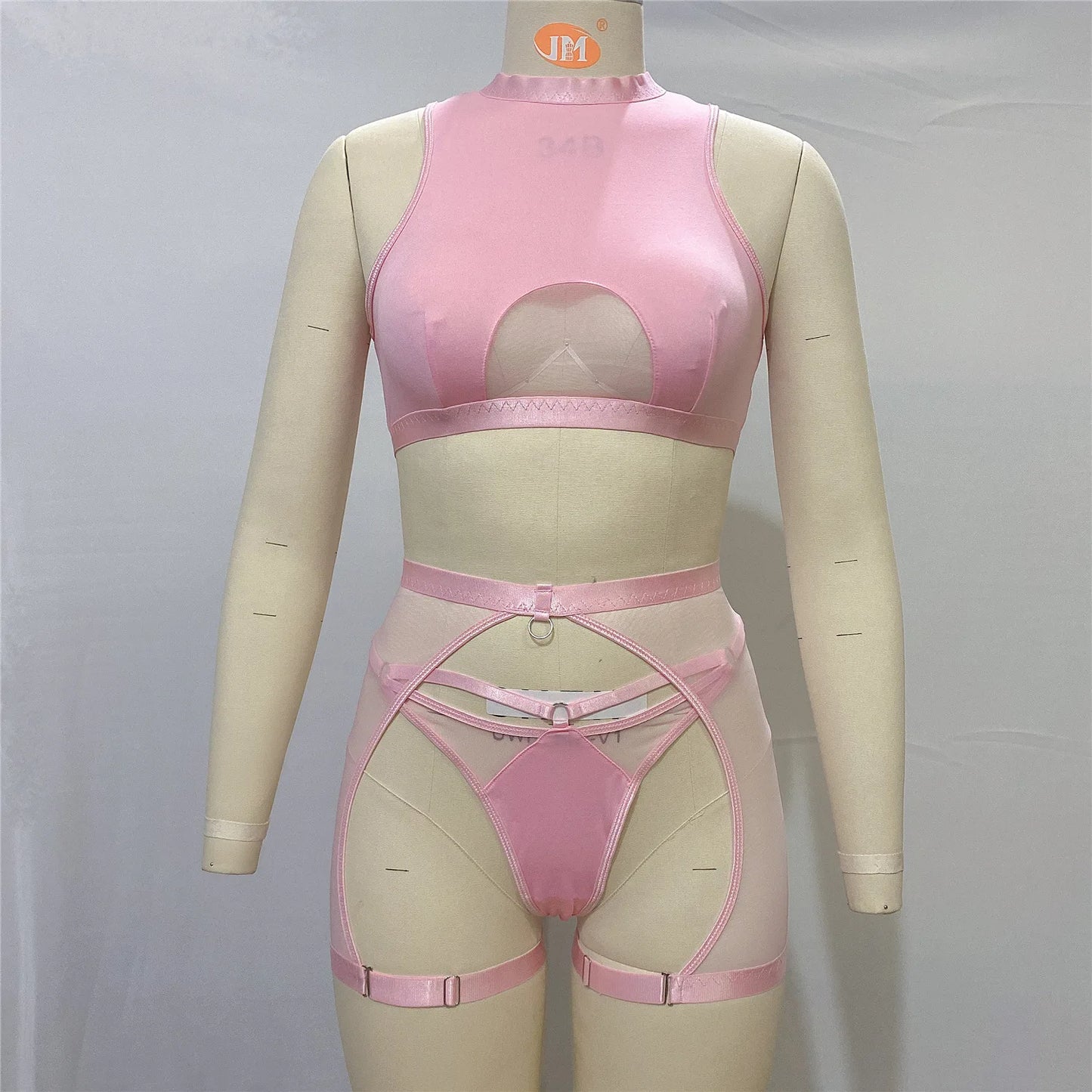Lingerie Set Woman 3 Piece Vest Top Seamless Underwear Garter Belt Set Thong Black Intimate Exotic Set
