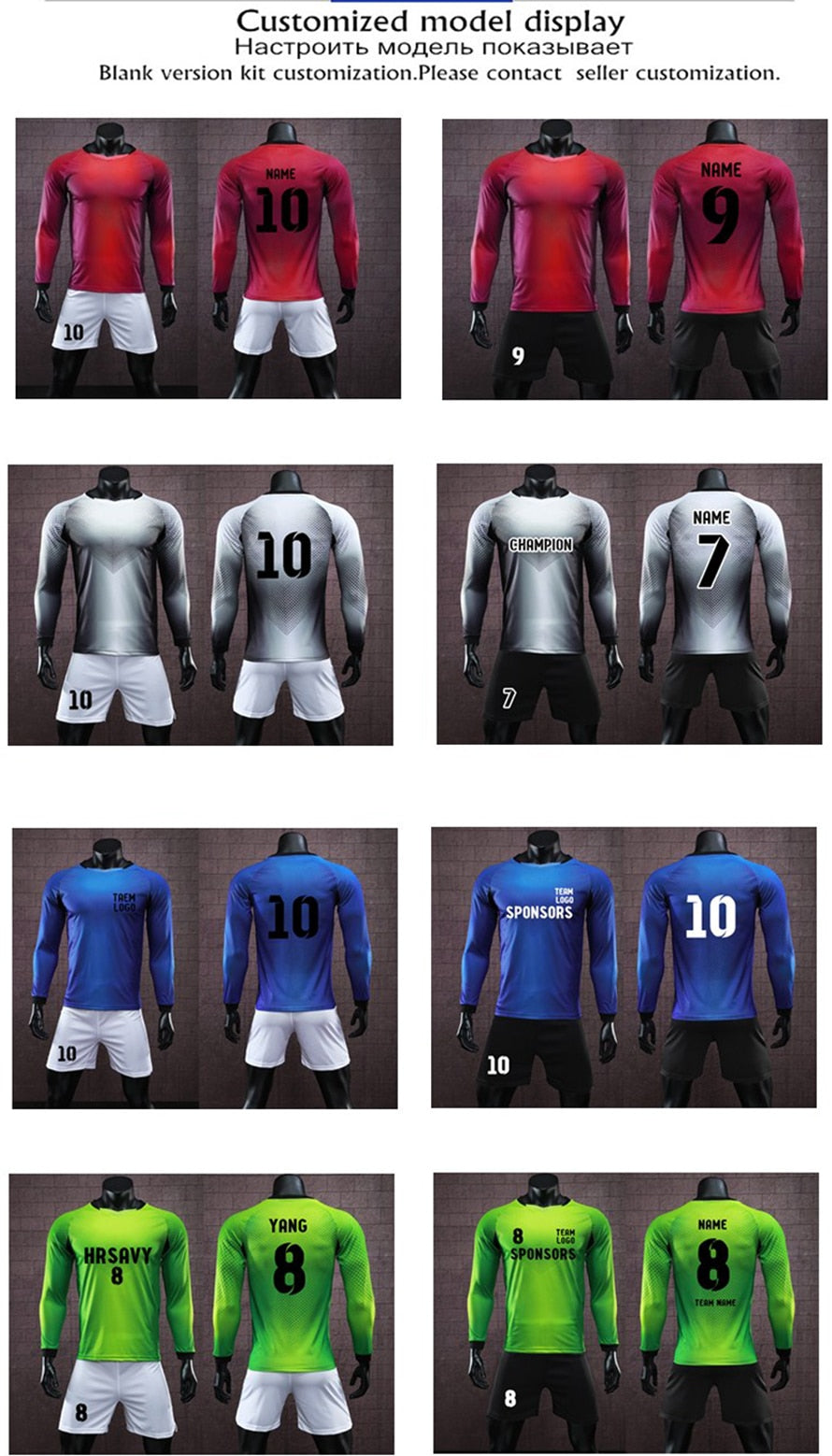 Long Sleeve Men's Ladies Kids Youth Football Jersey Kit Tracksuit Custom Soccer training jersey suit Goalkeeping Soccer Uniforms