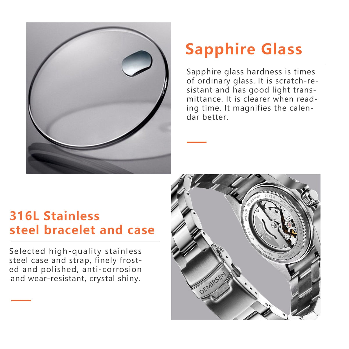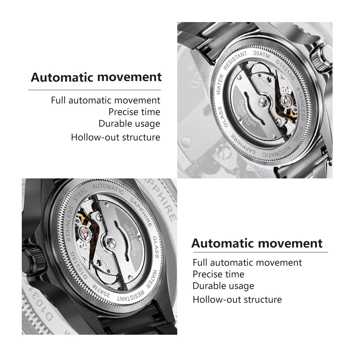 Luxury Automatic Watch Sport Stainless Steel Sapphire Glass Luminous Mechanical Men Ladies Wristwatch