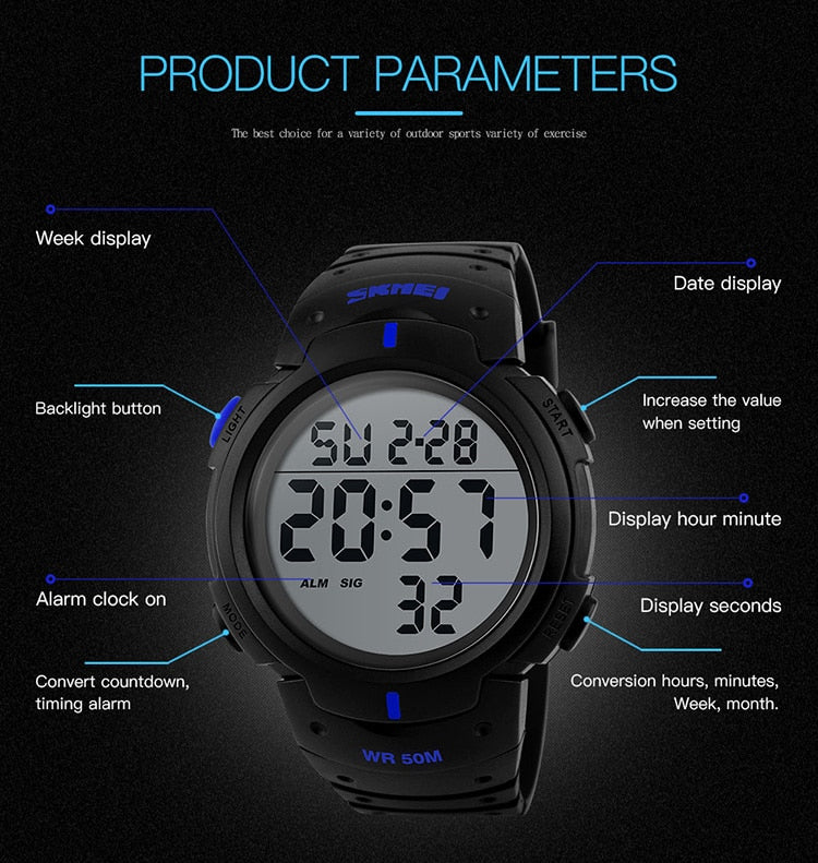 Men Ladies Sports Watches Chronos Countdown Watch Waterproof LED Digital Watch