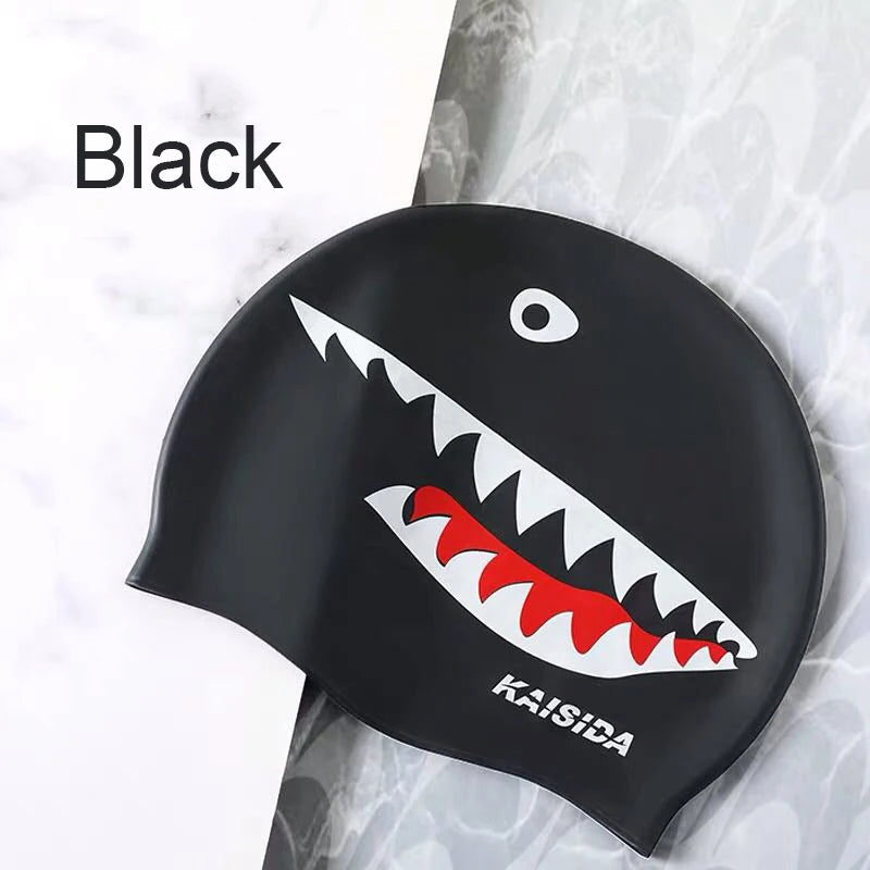 Men's Swimming Cap Adult Elastic Shark Swimming Caps Waterproof Protect Ears Long Hair Soft Women Bathing Cap