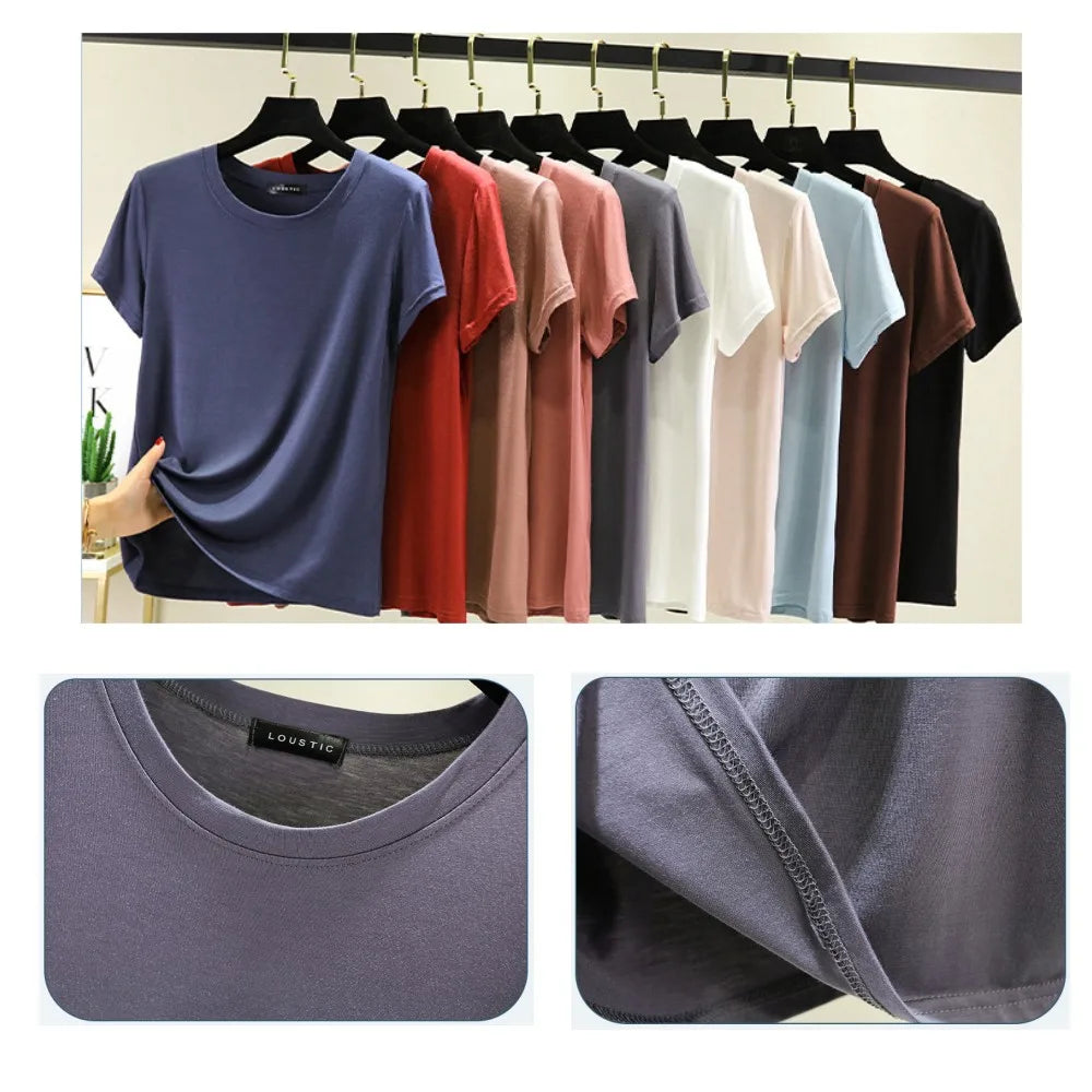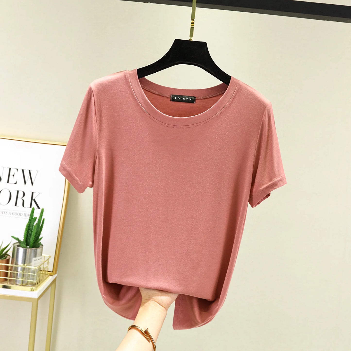 Modal O-Neck T-shirt Short sleeve Women's Summer Casual Basic T shirt Loose Tee Tops