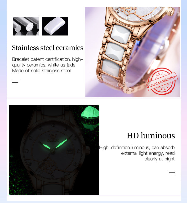 OLEVS Luxury Quartz Japan Movement 30M Water resistant Ceramics Ladies Watch